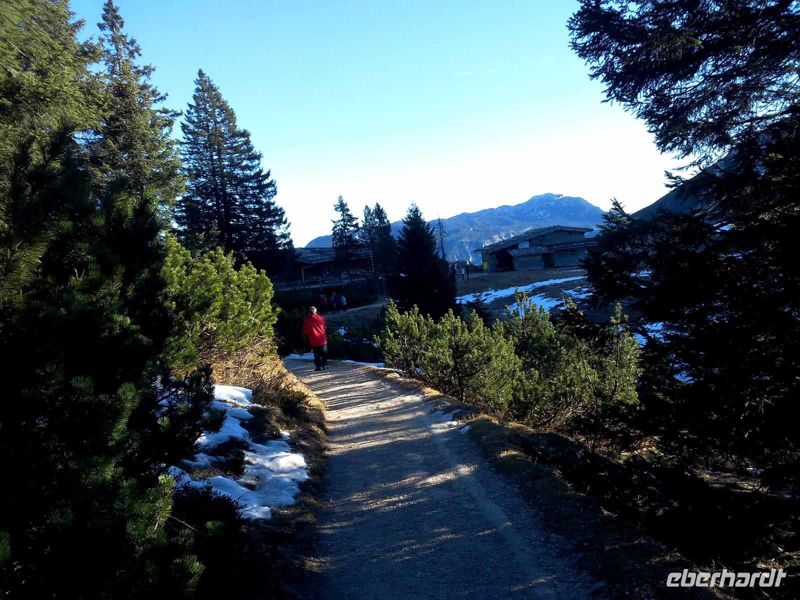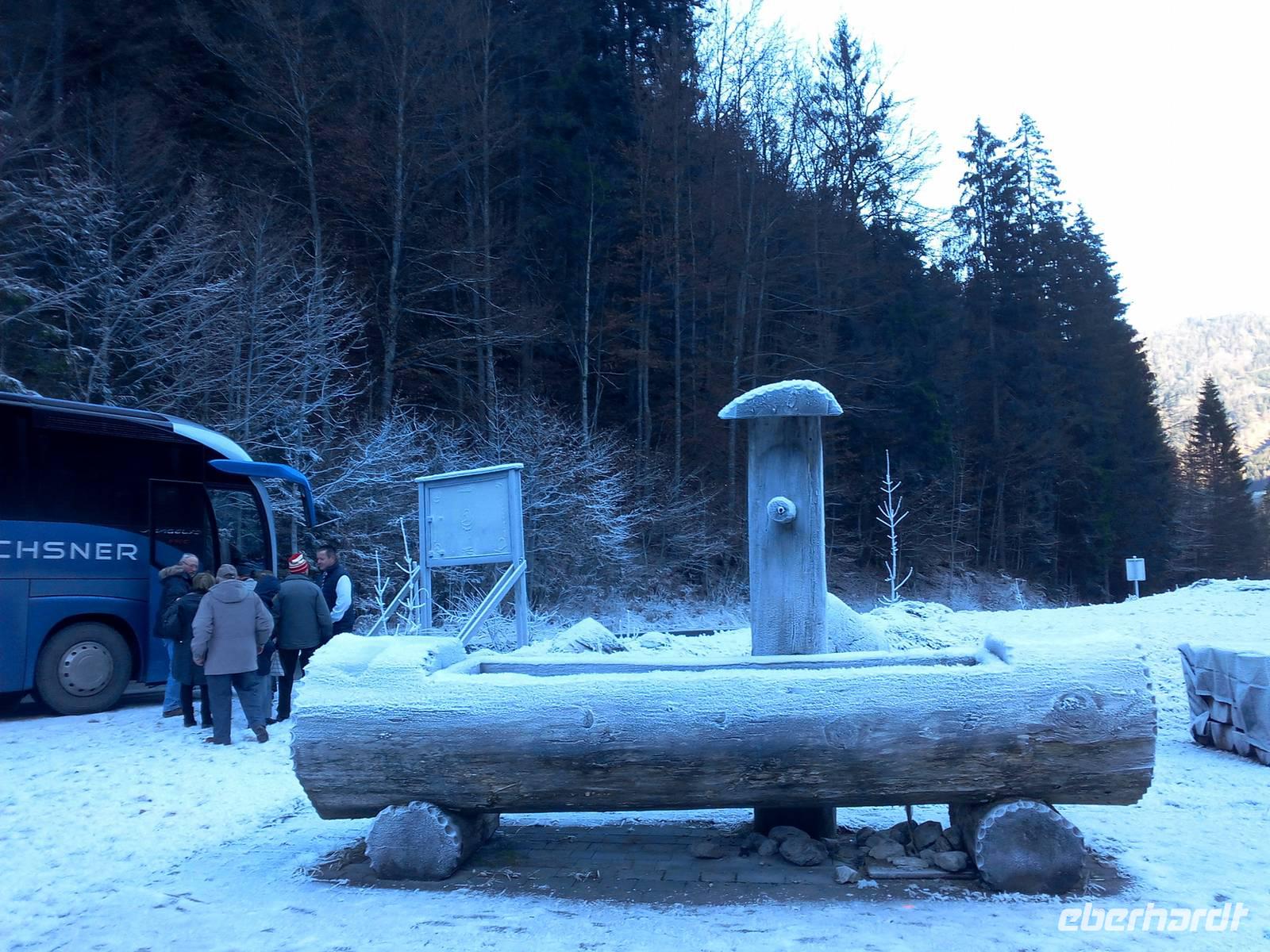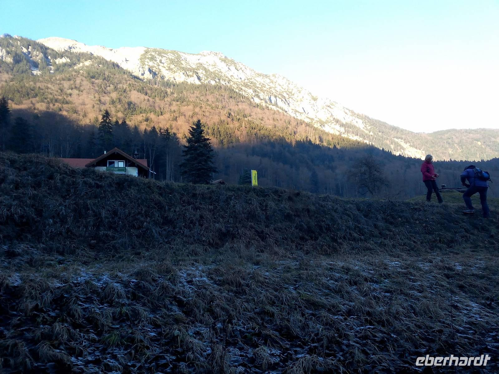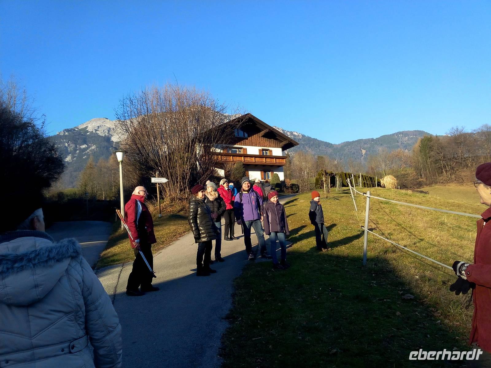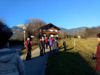 Das schöne Wetter bleibt uns erhalten und auf dem Weg nach Reit im Winkel fahren wir durch die Weißbachschlucht und ein Stück auf der Deutschen Alpenstraße entlang. Unterwegs machen wir uns mit der Schell-Unter-Sage vertraut und erinnern uns auch an Maria, die 2010 verstorben ist, und an Margot Hellwig, die ihre musikalische Laufbahn 2015 beendet hat. Der Spaziergang zu dem legendären Kuhstall ist ein Muss. Nach dem Aufenthalt in Reith im Winkel wartet Uwe schon mit einem Glühwein auf uns, den wir dankbar annehmen. Weiter führt uns unsere Fahrt nach Griesenau. Entlang des Kaiserbachtals wandern, spazieren und fahren wir zur Griesner Alm,
