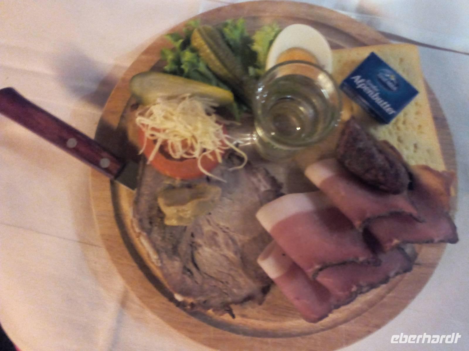 Zum Abendessen treffen wir mit dem anderen Teil der Gruppe (die bereits die Weihnachtsfahrt gebucht hatten) zusammen. Mit einem Schnaps (Enzian) stoßen wir an und wünschen uns ein paar schöne gemeinsame Tage.