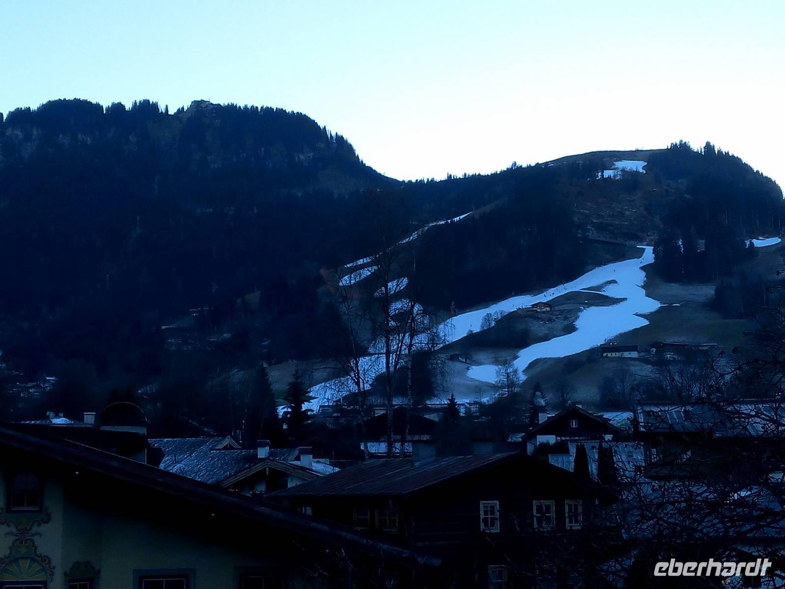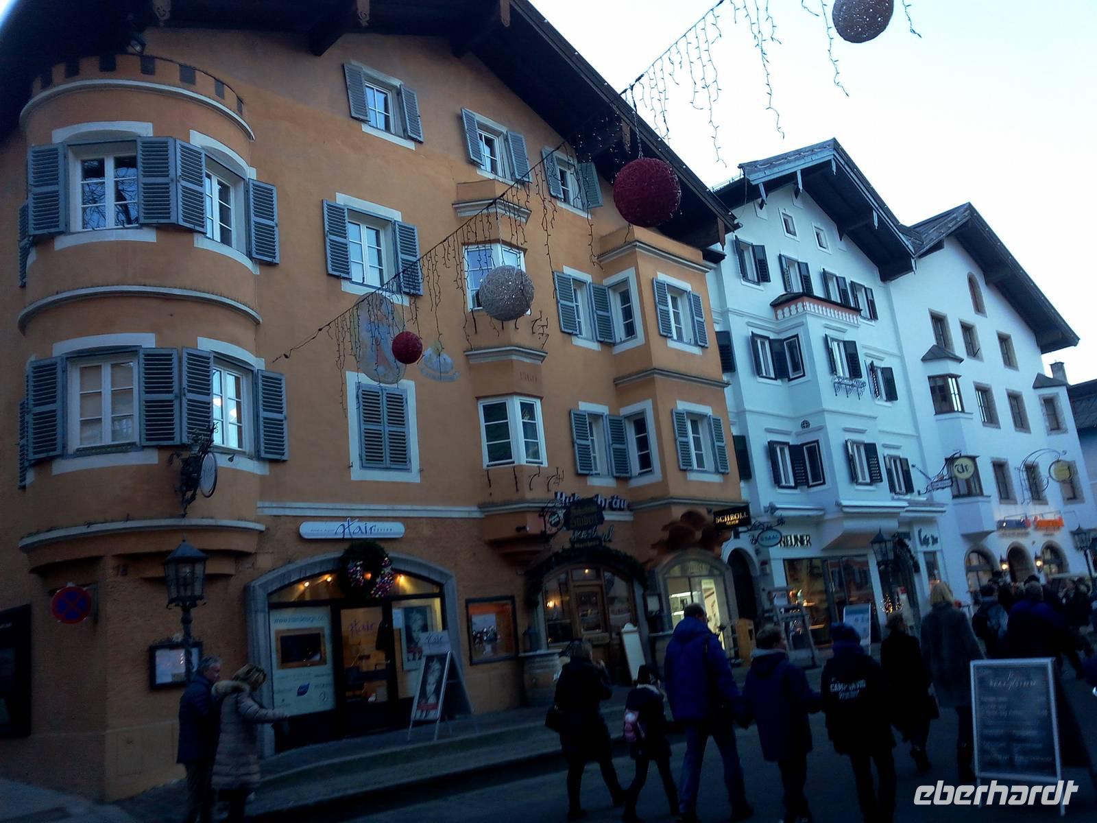 auf der wir uns eine Bretteljause oder auch einen Kaiserschmarren schmecken lassen. Auf dem Weg zur Alm und auch auf dem Rückweg freuen wir uns immer wieder über die beeindruckenden, in ihrer Größe einmaligen, Eiskristalle. Wir fahren weiter entlang des Kaisergebirges und können den Wilden Kaiser von seiner schönsten Seite beobachten, bevor wir in Kitzbühel ankommen. Wir fahren an den Fuß des Hahnenkamms (1712m), der durch das Hahnenkamm-Rennen bekannt ist und jährlich 80.000-100.000 Besucher anlockt. Eine gute Stunde lassen wir uns für den Bummel Zeit um die mondäne Stadt, die international als einer der bedeutendsten Wintersportorte Österreichs bekannt ist, zu erkunden. Viele Touristen sind in der Stadt und auch die Sportler kommen vom Hahnenkamm herunter. Nach dem wir durch die überfüllten Straßen gekommen sind, fahren wir über Lofer zurück zum Hotel.