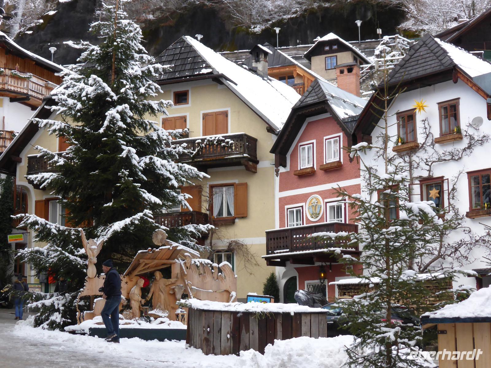 Heute hatten wir ein umfangreiches, aber auch abwechslungsreiches Programm. Bei viel Sonnenschein führte uns der Weg vorbei an Salzburg nach Thalgau. Entlang des Fuschl- und Wolfgangsee erreichten wir Bad Ischl. Bad Ischl war im 19. Jahrhundert Treffpunkt der eleganten und gebildeten Welt und ist das älteste Solebad Österreichs. Kaiser Franz Joseph I verbrachte hier viele Sommerferien und verlobte sich auch mit der Wittelsbacher Prinzessin Elisabeth. Wir unternahmen einen kurzen Spaziergang zur Kaiservilla und bummelten über den Wochenmarkt. Die Weiterreise führte uns an das malerisch gelegene Hallstatt an den Hallstätter See. Hallstatt wurde von Alexander von Humboldt als „der schönste Seeort der Welt" bezeichnet, wie Schwalbennester kleben die Häuser am Berghang. Entlang der Uferpromenade bummelten wir mit zahlreichen Asiaten durch den Ort. Im Anschluss fuhren wir über Pass Gschütt, die Salzburger Dolomitenstrasse durch das Lammertal. Über die Tauernautobahn und Pass Lueg erreichten wir Berchtesgaden. Bis zur Schlossführung hatten wir noch etwas Zeit, den Berchtesgadener Advent zu besuchen. Besonders malerisch war der geschmückte Schlosshof.