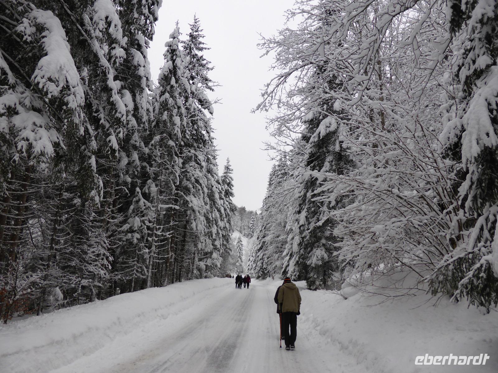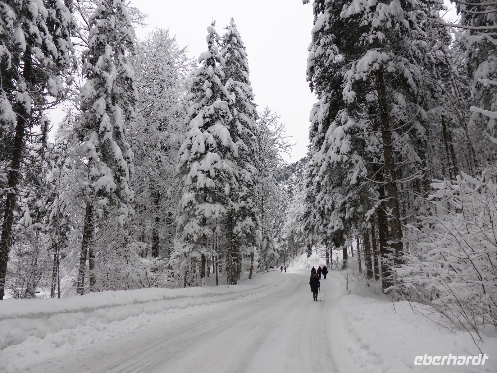 Das erste Ziel des heutigen Tages war Reit im Winkl. Nach einem kurzen Aufenthalt reisten wir weiter nach Griesenau ins Kaiserbachtal. Das Kaiserbachtal teilt den wilden vom zahmen Kaiser im Kaisergebirge und ist mit einer ca. 5 Kilometer langen Mautstraß erschlossen. Entlang der Mautstrasse wanderten wir durch den herrlich verschneiten Winterwald zur Fischbachalm. Von dort wurden wir zur Griesener Alm chauffiert. Auf der Griesener Alm genossen wir eine gemütliche Zeit bei einer guten Jause. Den Rückweg legten einige Gäste mit dem Schlitten zurück. Der Großteil nutzte den Transferservice zurück zum Bus. Am Nachmittag bummelten wir durch das noble Kitzbühel bevor es über Lofer und das Saalachtal zurück ins Hotel ging.