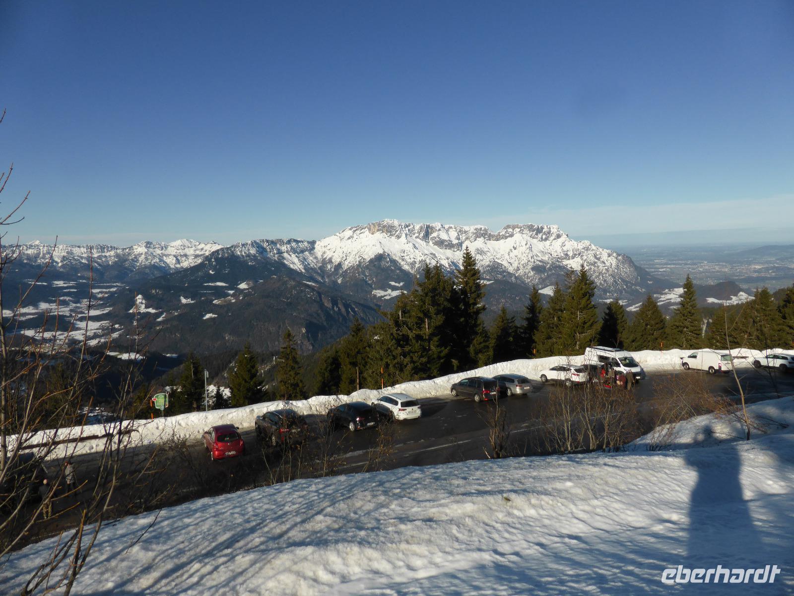 Bei strahlendem Sonnenschein fuhren wir über Ramsau nach Berchtesgaden. Über Oberau erreichten wir die Nordauffahrt zur Roßfeldpanoramastraße. Diese Ringstraße wurde als Abschluss der Deutschen Alpenstraße 1955 endgültig fertig gestellt. Es handelt sich um die höchste deutsche Bergstraße mit einer Länge von 15,4 Kilometer. Von der Scheitelstrecke genossen wir eine phantastische Aussicht auf das Salzachtal, den Dachstein, das Tennen- und Hagengebirge, das Kehlsteinhaus sowie die Berchtesgadener Alpen mit dem Watzmann.
