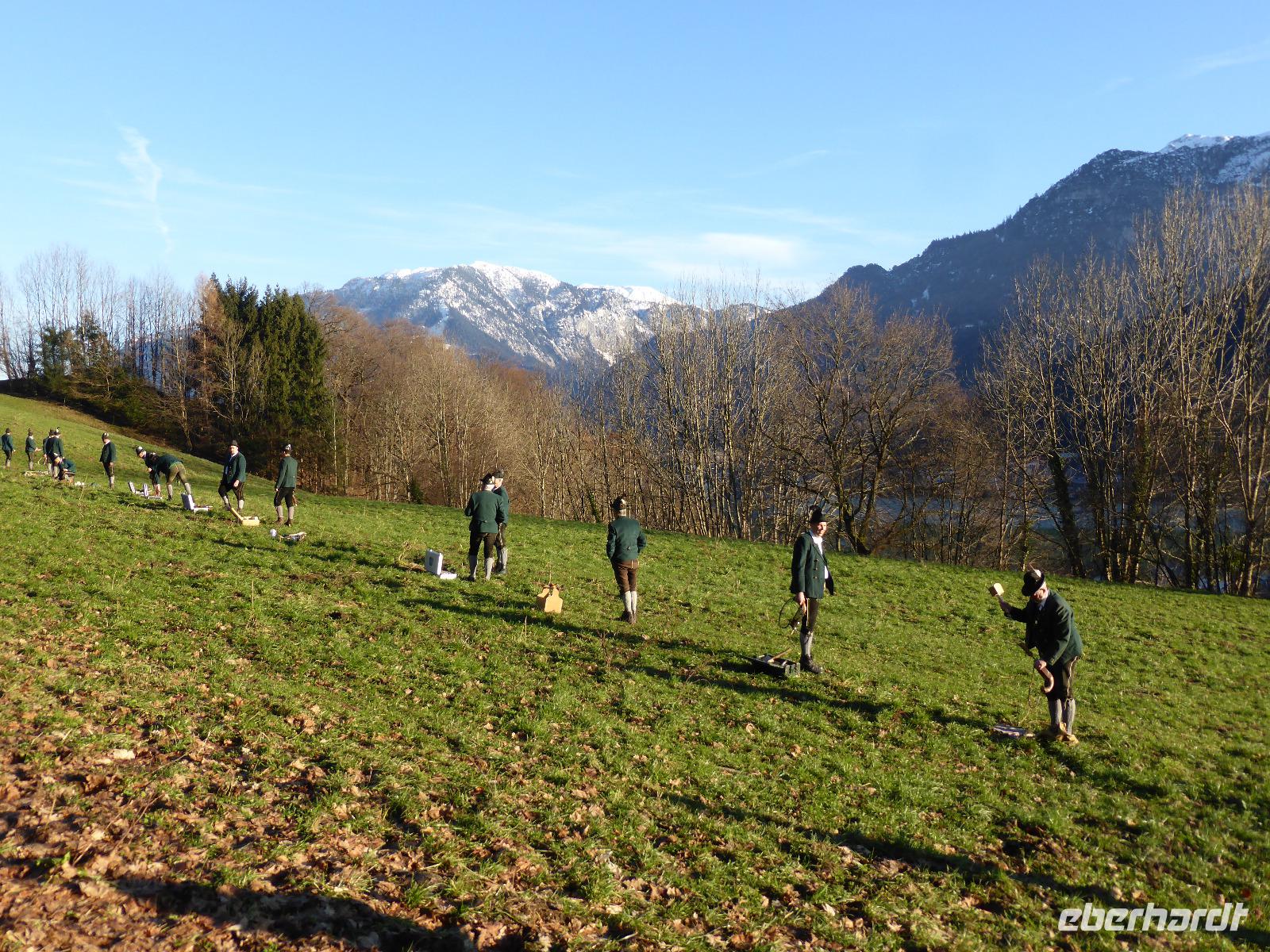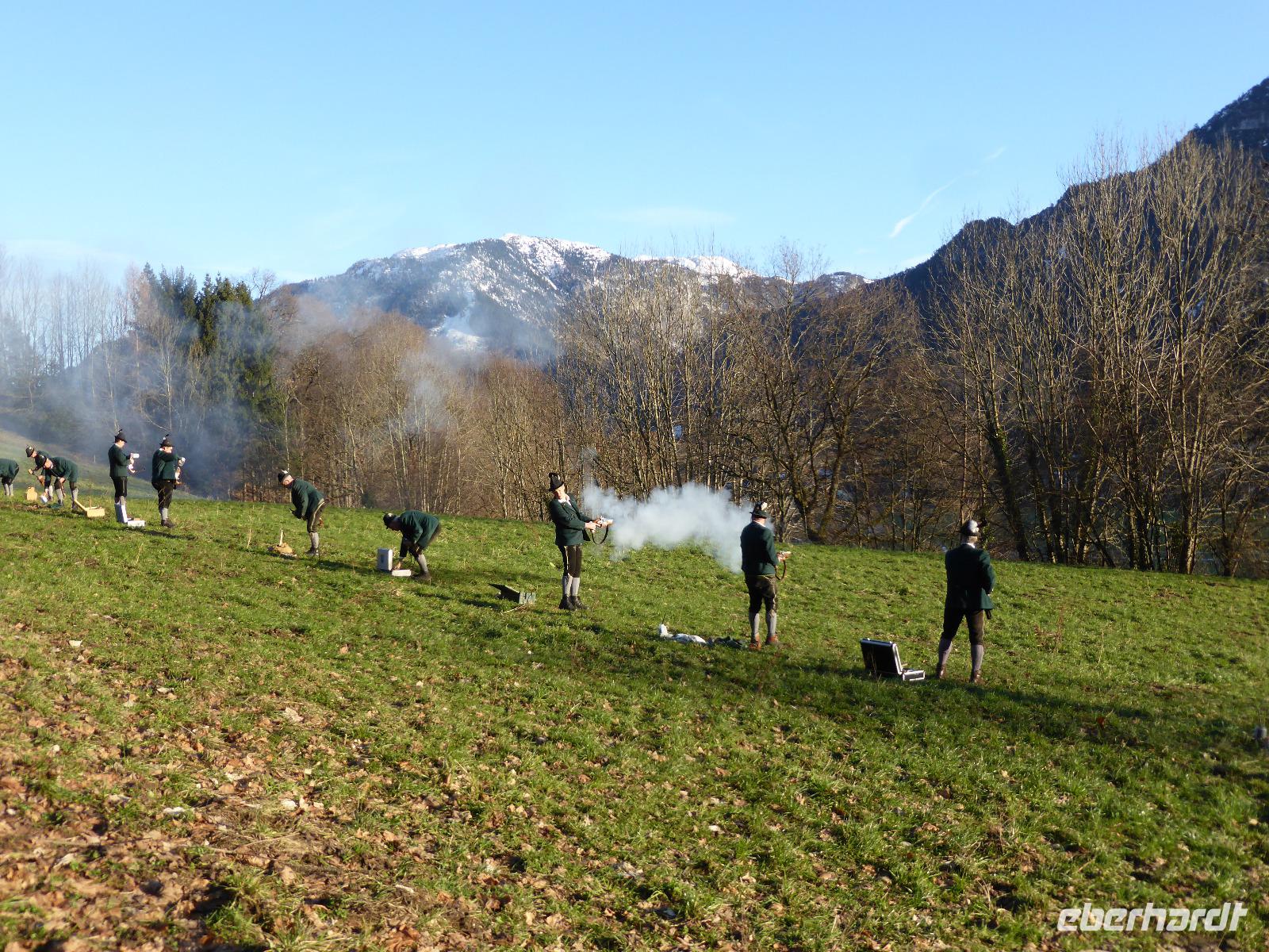 Eine bayerische Tradition ist das Christkindlschießen. Im Berchtesgadener Land beginnt das Christkindlschießen am 17. Dezember um 15:00 Uhr. Bis zum Heiligen Abend schießen die Schützenvereine immer zur selben Uhrzeit. Mit Lärm und Feuer sollten die bösen Geister vertrieben werden und das Christkind den Weg zur Erde besser finden. Pünktlich um 15:00 Uhr bestaunten wir die 25 Schützen und das 15minütige Spektakel auf der Wiese beim „Seppenbauern". Mal sehen, ob das Christkind den Weg zu uns findet. Zurück im Hotel erwartete uns Manfred Schindler mit einem Schnapserl.