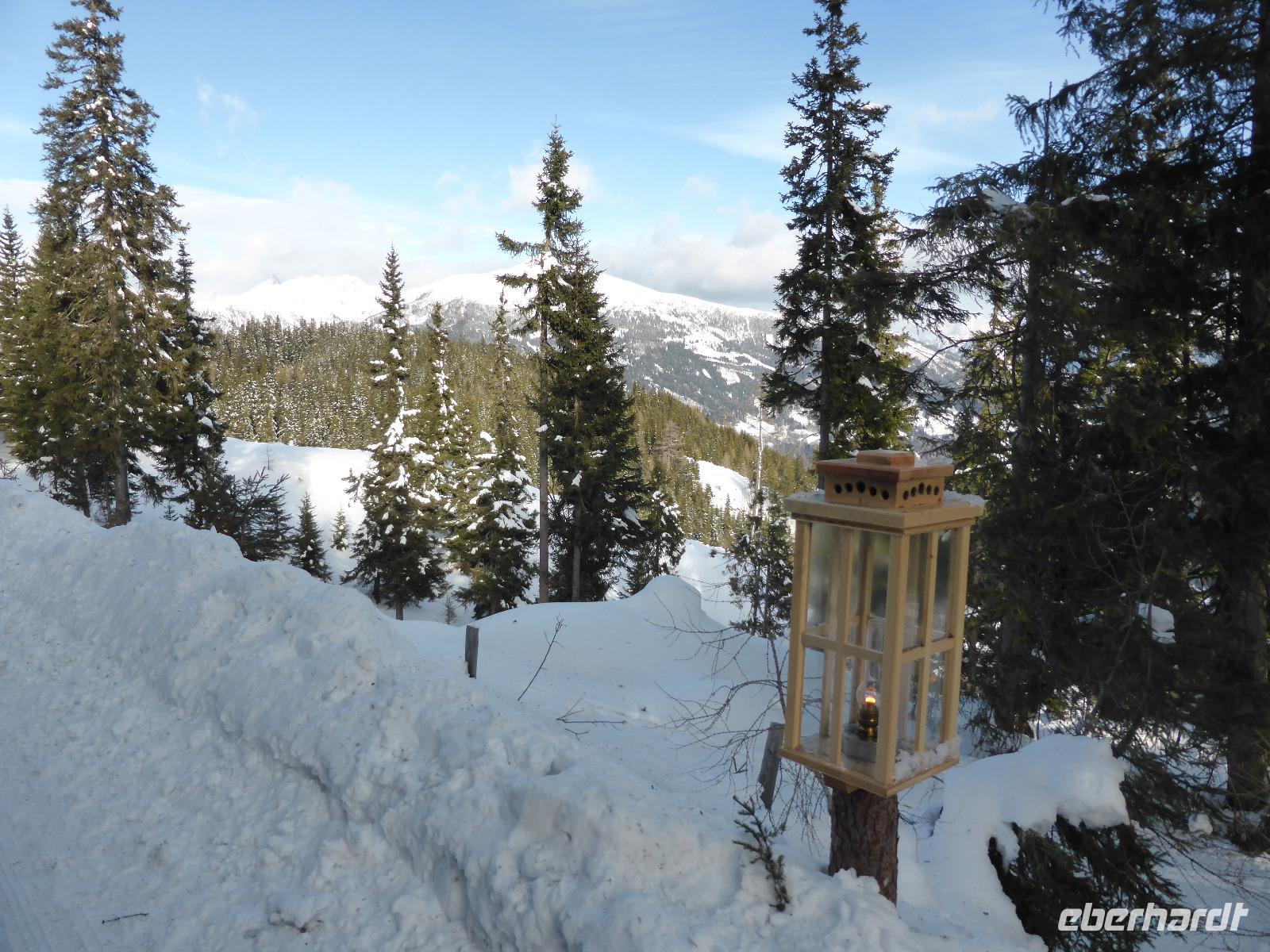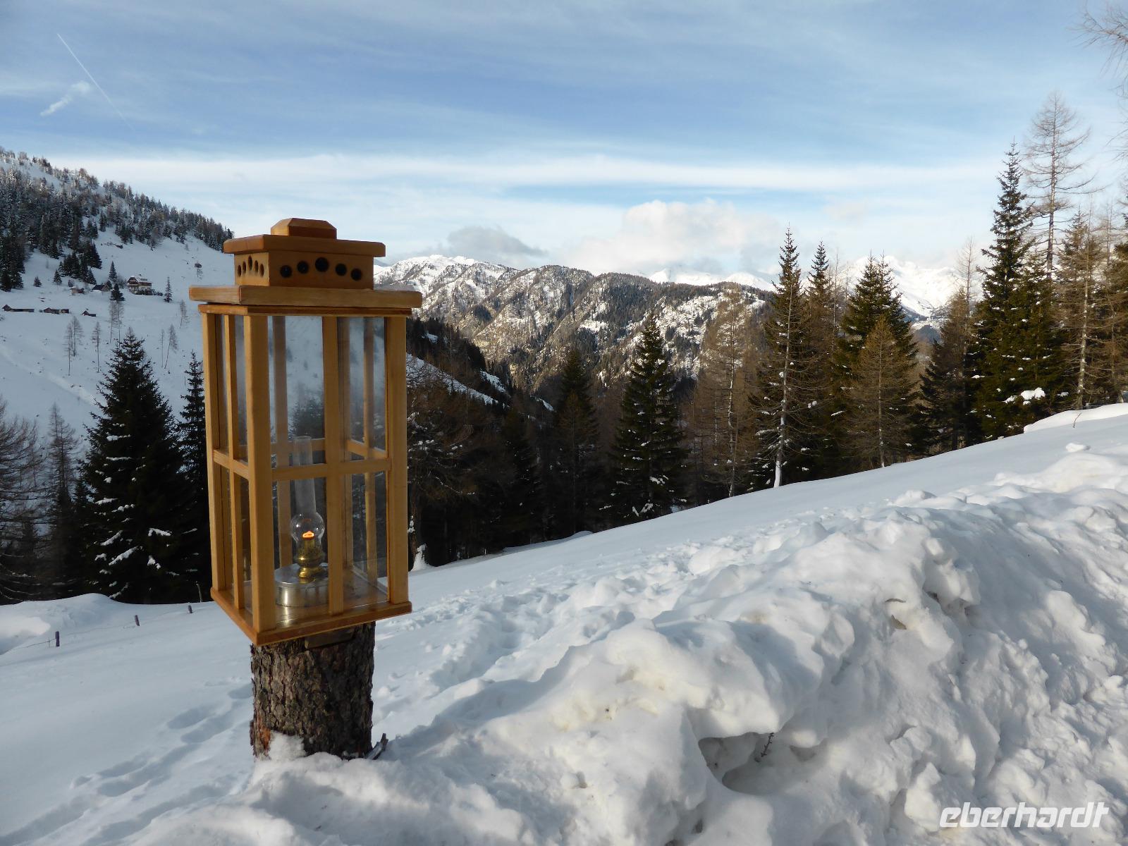 Zurück am Bus erwartete uns eine kulinarische Köstlichkeit aus der Heimat. Wir wurden mit einem Stollen und Lebkuchen verwöhnt. Gestärkt fuhren wir zurück zum Hotel und begaben uns auf eine Wanderung. Mit dem Bus erreichten wir den nahe gelegenen Thumsee. Von dort ging es mit Laternen entlang des Sees und über den Wald wieder zurück zum Hotel. Hier wurden wir mit einem Schnapserl erwartet.