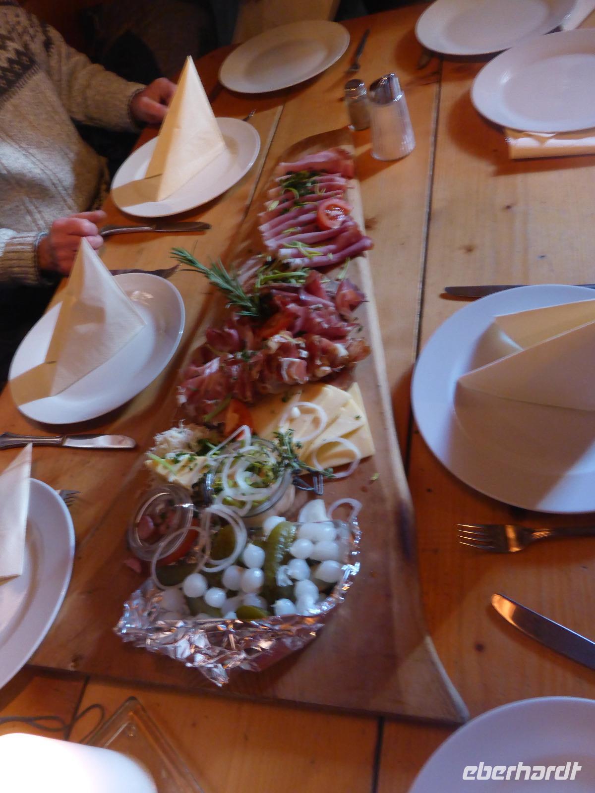 Wir wurden mit einem Schnapserl überrascht, welchen wir gleich genossen. Zum Mittagessen waren wir im Ahornkaser reserviert. Aufgrund des eingesetzten Tauwetters war der Weg zum Restaurant für alle sehr beschwerlich. Den Rückweg überstanden nicht alle Gäste heil, sodass wir am Abend noch ein Gipsbein zu verzeichnen hatten.