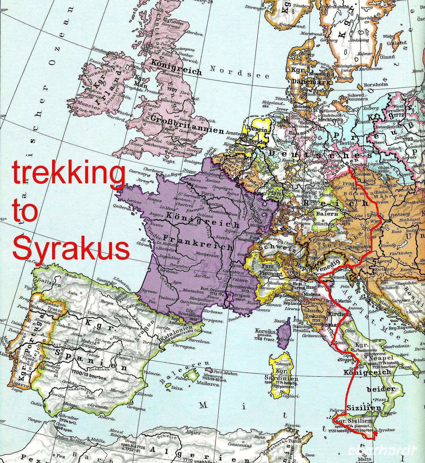 Dieser Bericht basiert auf einer Etappenwanderung "Spaziergang nach Syrakus", die der Autor des Berichtes leitete. Die Sondergruppe wanderte von Dresden nach Prag, im Folgejahr vom Prager Stadtrand na
