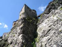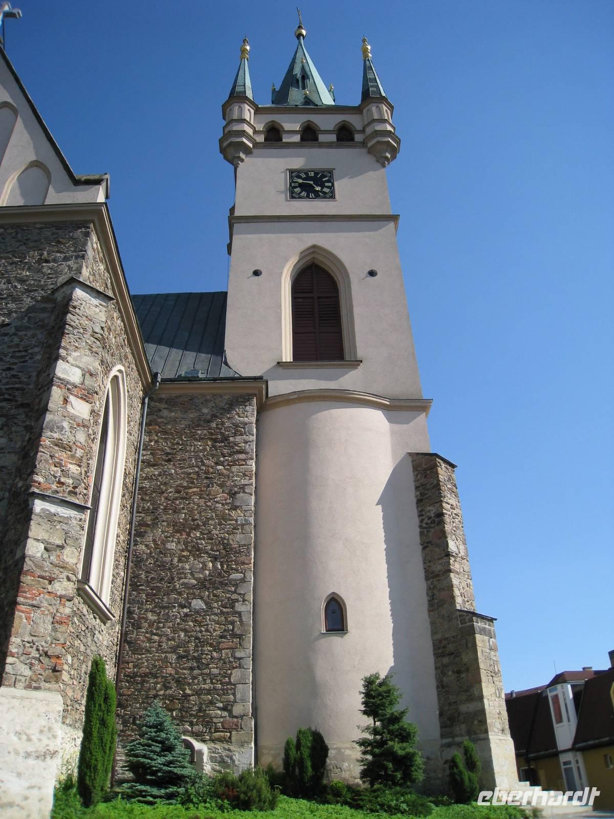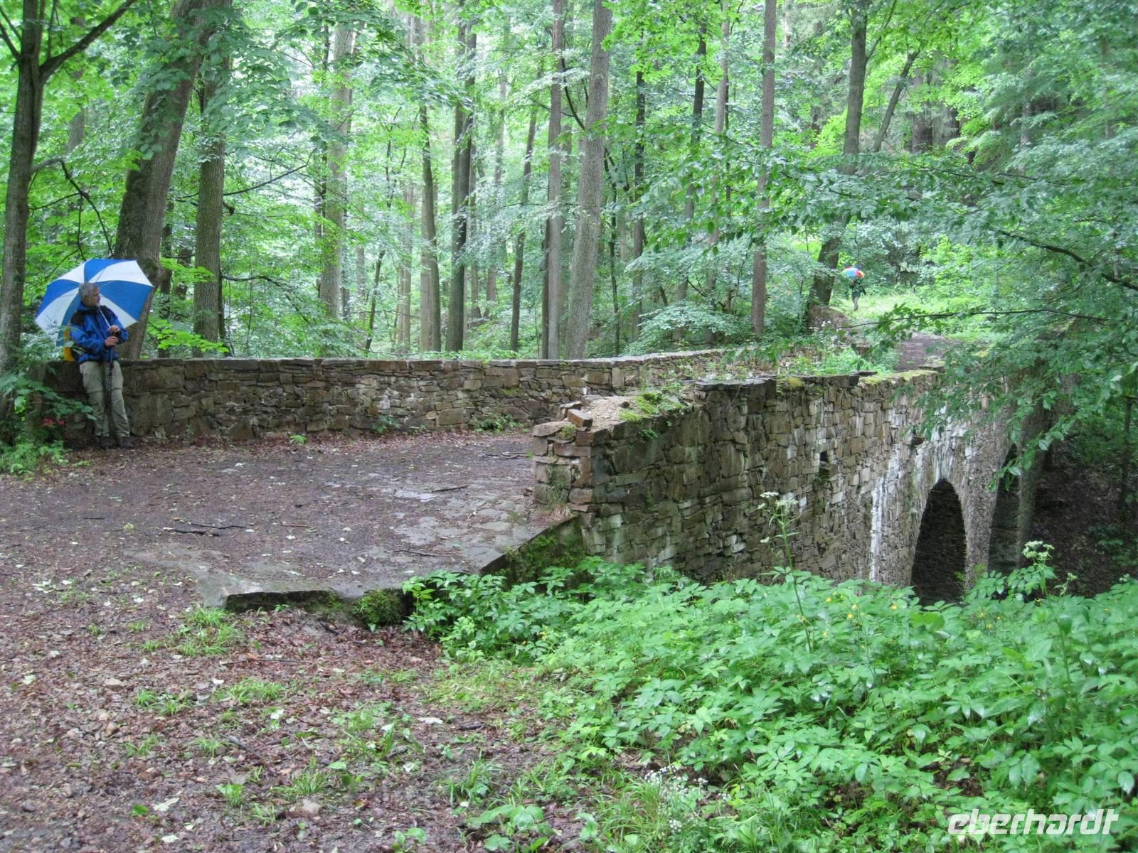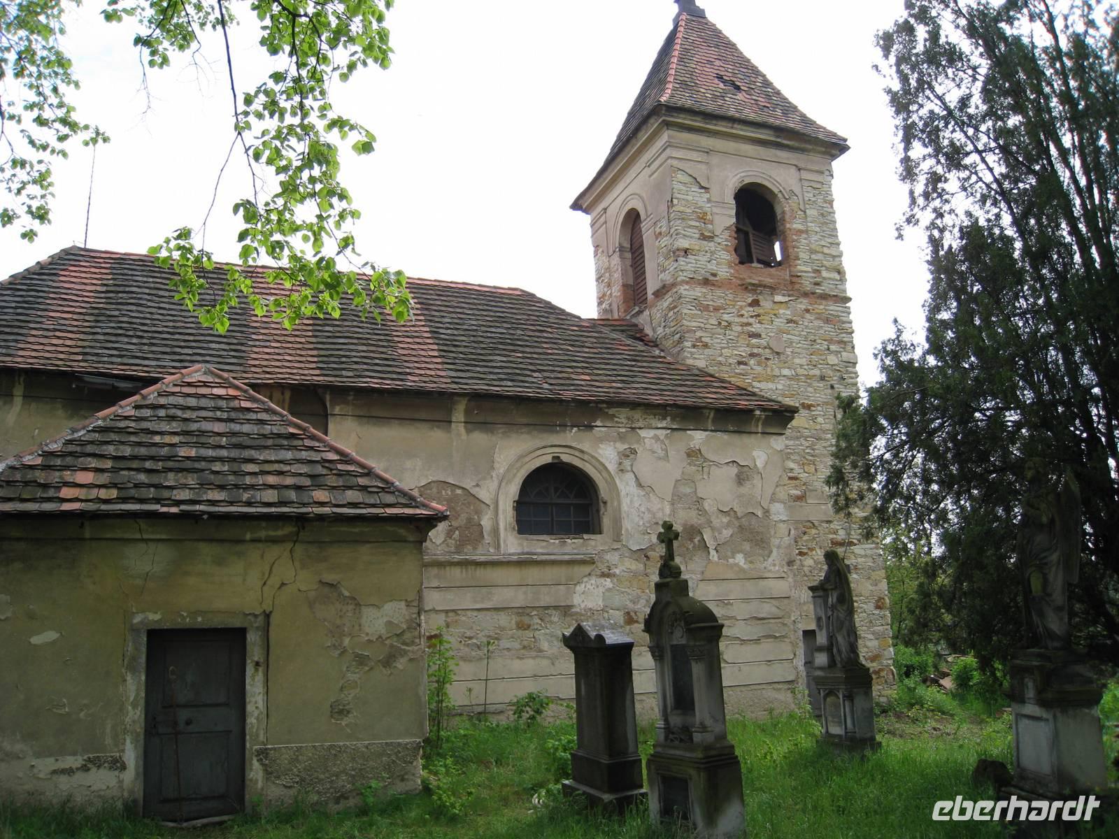 Nahe des Ortsbeginns zweigten wir nach Rajec ab. Dieser früher überwiegend von Deutschen bewohnte Ort ist heute Sommerfrische inmitten von Wiesen, die durch Baumraine geteilt werden, unterhalb schwarzer Sandsteinfelswände. Parallel zur Grenze erreichen wir die Tissaer Wände von Nordosten, um über die Felsen kletternd im namengebendem Ort zur Kirche abzusteigen. Die kleine Dorfkirche aus dem Jahrgang 1798 - Seume hätte sie also besuchen können - ist ein wenig renoviert worden.