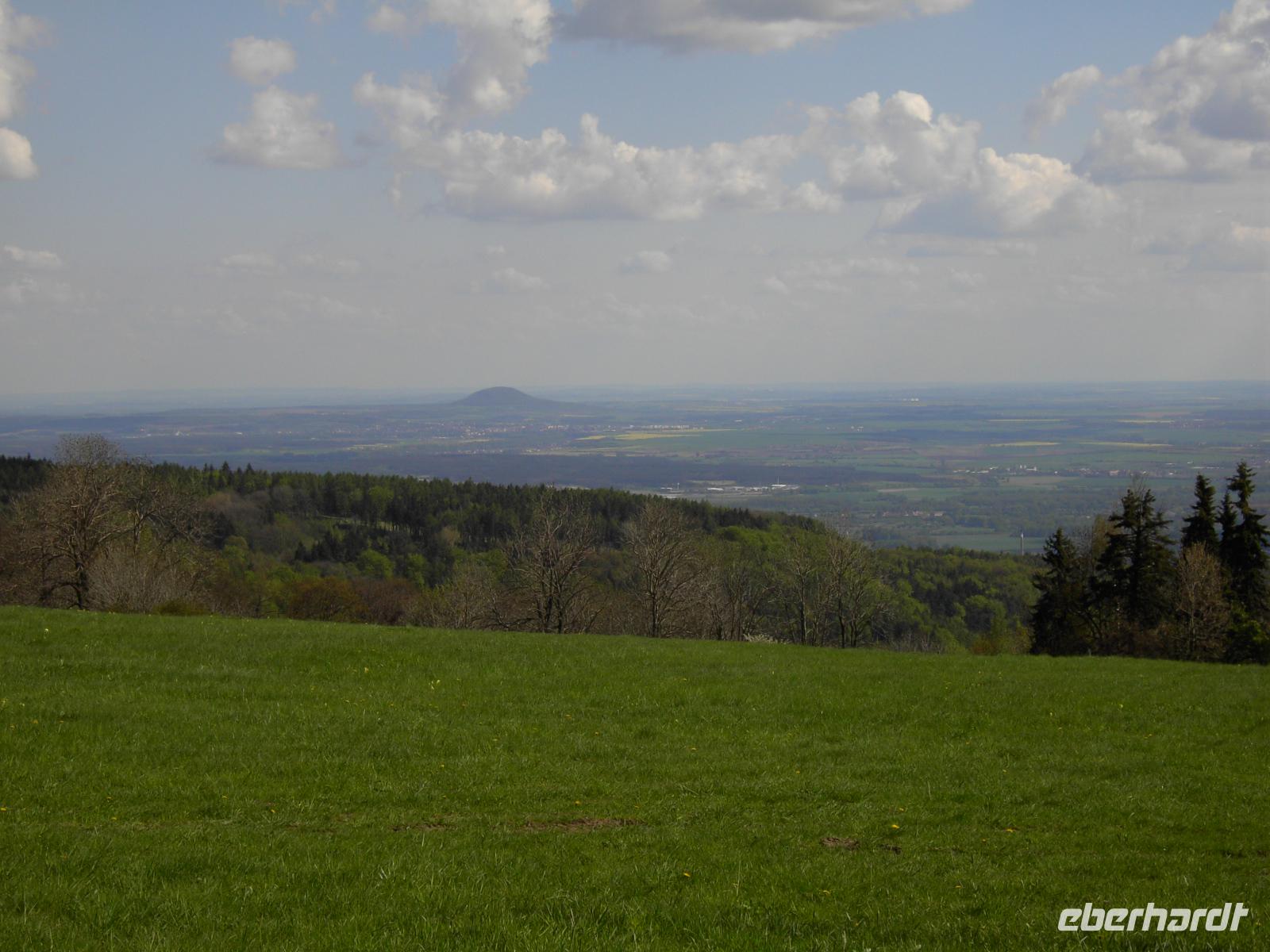 Die Ausblicke auf dieser Etappe waren phantastisch: zu Lovos und Milesovka zur Rechten; zum Sedlo halblinks vorn, den wir irgendwann aufgrund des Gipfelaufbaus in der Entfernung als Everest (der Hillary-Step an der rechten Kante) bezeichneten; besonders aber, leider nur an einer Stelle in seiner ganzen Schönheit das nördliche Panorama, vom Stürmer bei Zinnwald bis zum Hochwald bei Zittau - das gesamte Szenario der Gipfel von Osterzgebirge bis Zittauer Gebirge.