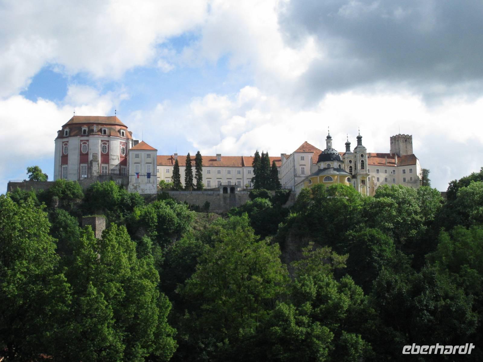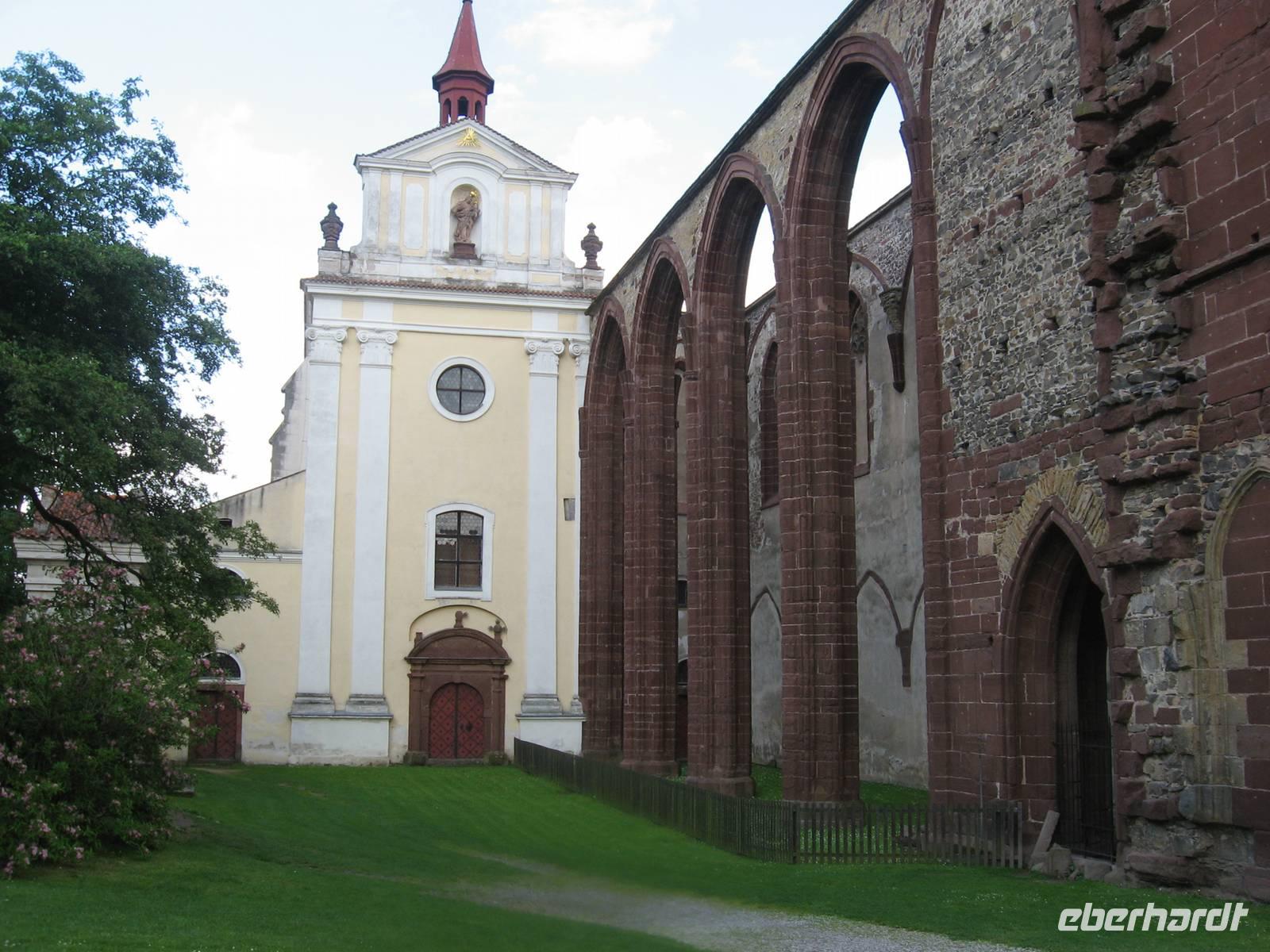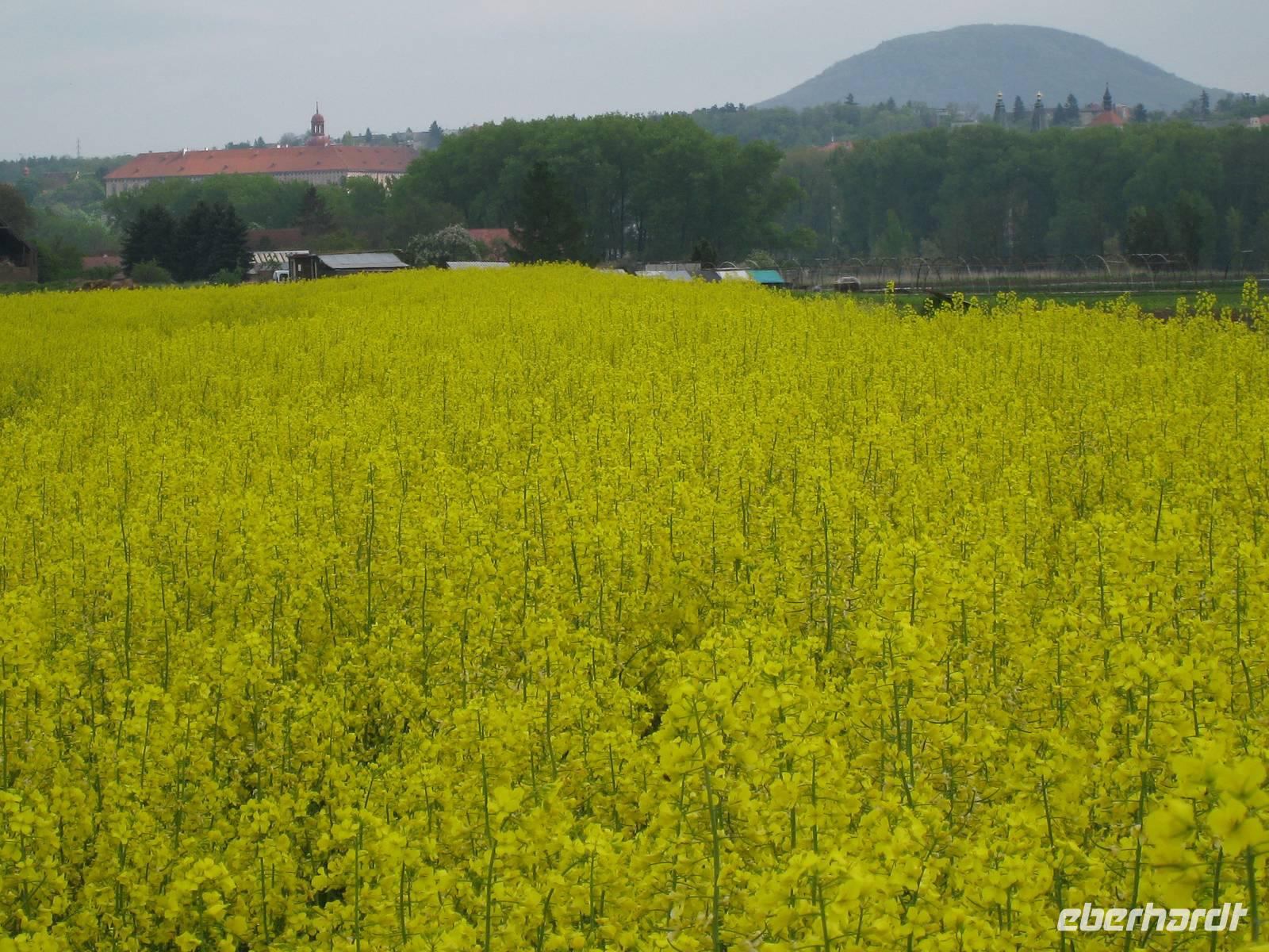 Sie setzte sich auf scheinbar ihren Stammplatz der 25 Kirchplätze und hörte stolz dem Sohne zu, wie er freigelegte Wandmalerei und Abschlusstücke zeigte und erklärte, dass die Kirche im 14. Jahrhundert erbaut wurde, eine Glocke von 1491 hat, Kriege und Besatzungen überstand und er erst kürzlich als 22jähriger getauft wurde und nun die hiesige, kleine Gemeinde stärkt.Hinter üppigen Rapsfeldern erhob sich schon bald das Schloss der Herren von Lobkovicz in Roudnice. Imposant drohnt es direkt hinter der Elbe; an die Besitzer rückübertragen, privatisiert, verharrt es weitestgehend ungenutzt in der Hoffnung auf staatliche Fördermittel zur Erhaltung.