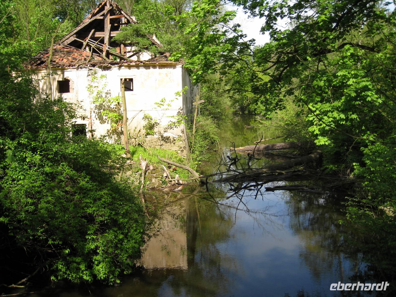 Zwischen Moldau und Moldau-Kanal liegt eine Auenlandschaft mit mächtigen, steinalten Parkbäumen und einer verfallenden Wassermühle. Dahinter ein an Rammenau oder Gaußig erinnerndes Schloss, die Seitenflügel und Torhäuser wirken zwangsbesetzt, wie ehedem die Hamburger Hafenstraße.
