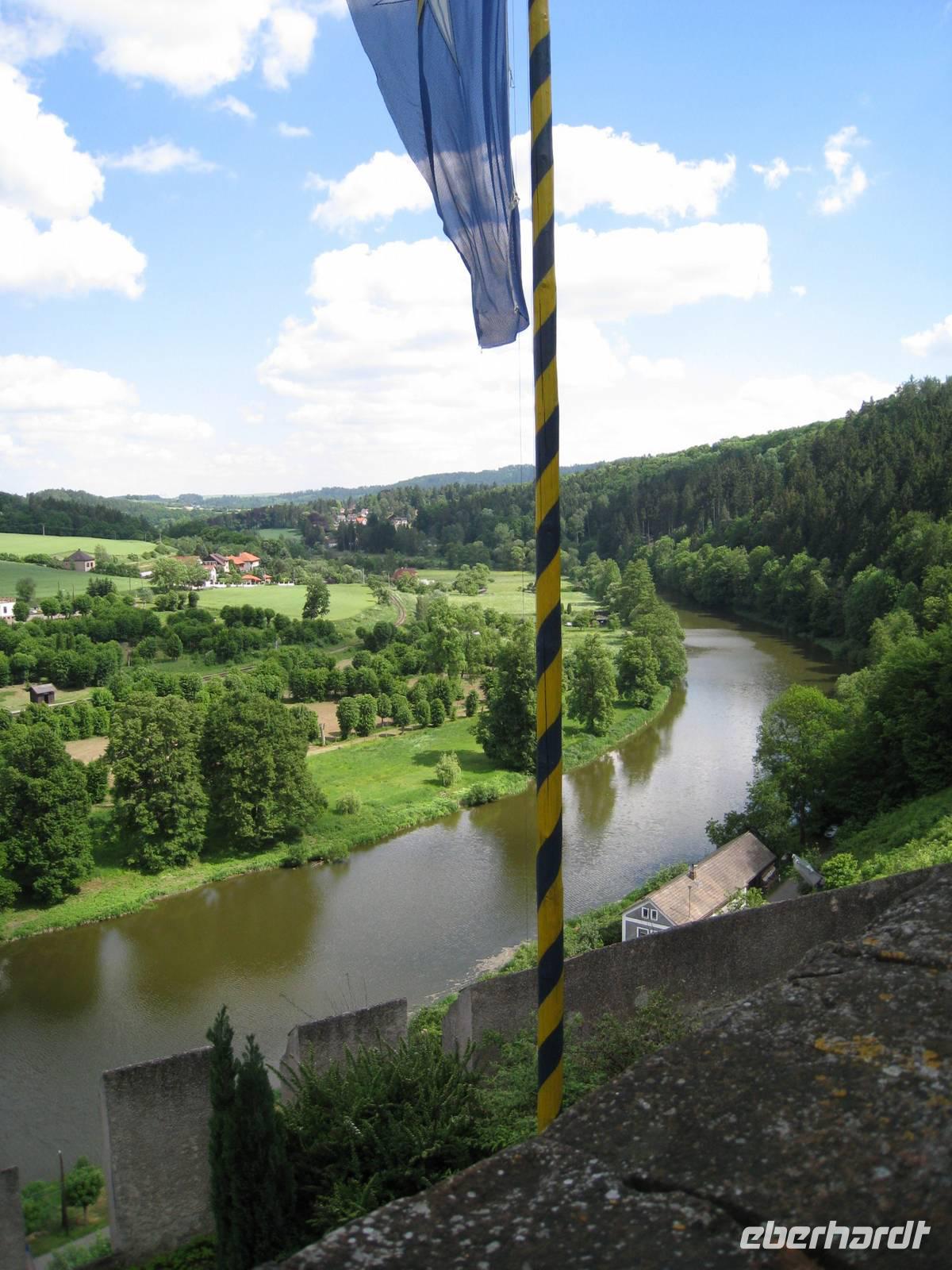 Die gewaltige Burganlage und darunter liegende Talsperre aus den 30er Jahren erleben wir bei Regen. Auch die Burg Cornstein bleibt uns verschlossen. Auf den folgenden Kilometern trotzen wir dem Regen. Zwei Gaststätten konkurrieren um die Gunst der Kunden, indem Sie beide 16:00 Uhr öffnen - aber es ist erst 14 Uhr.