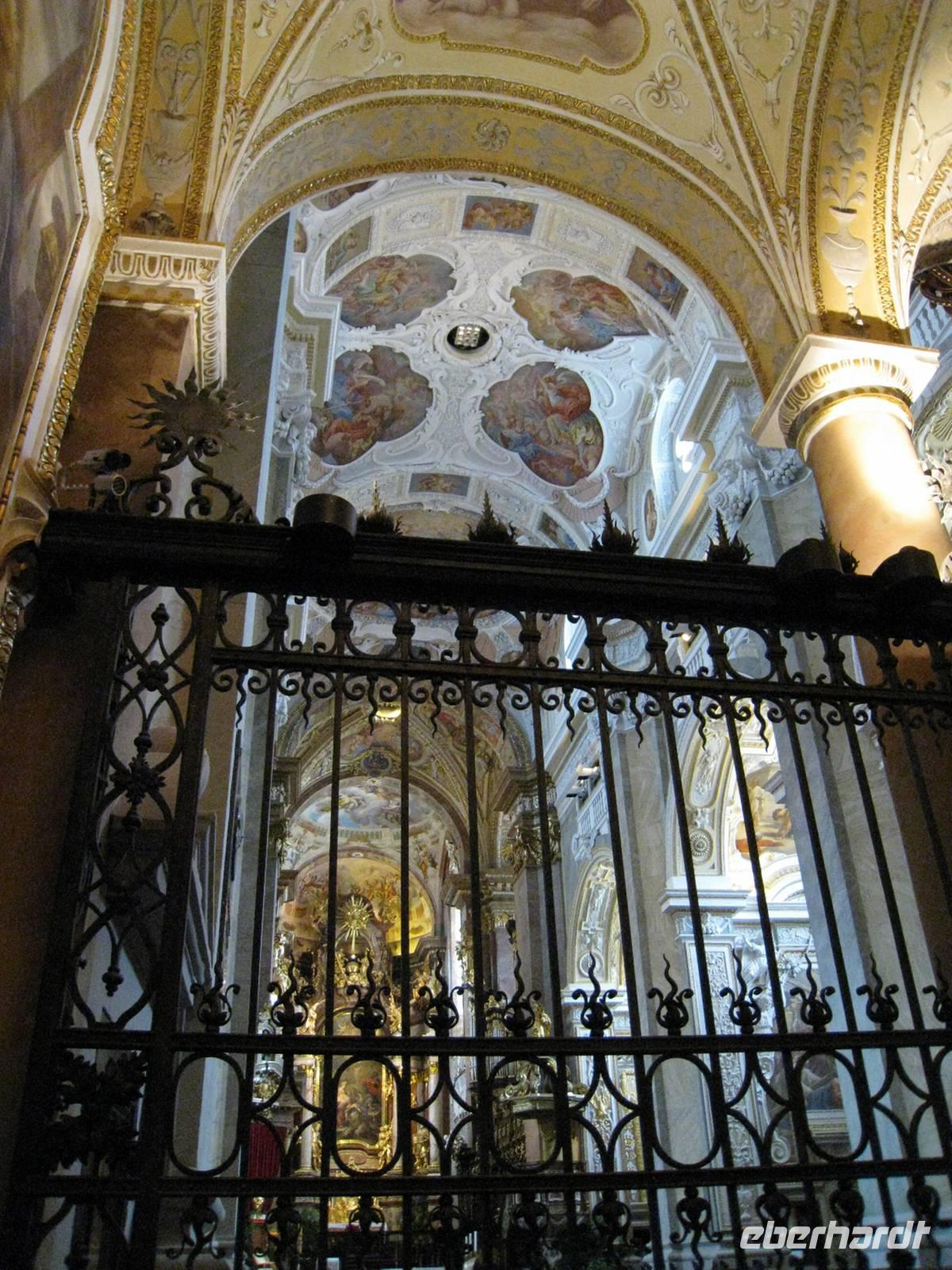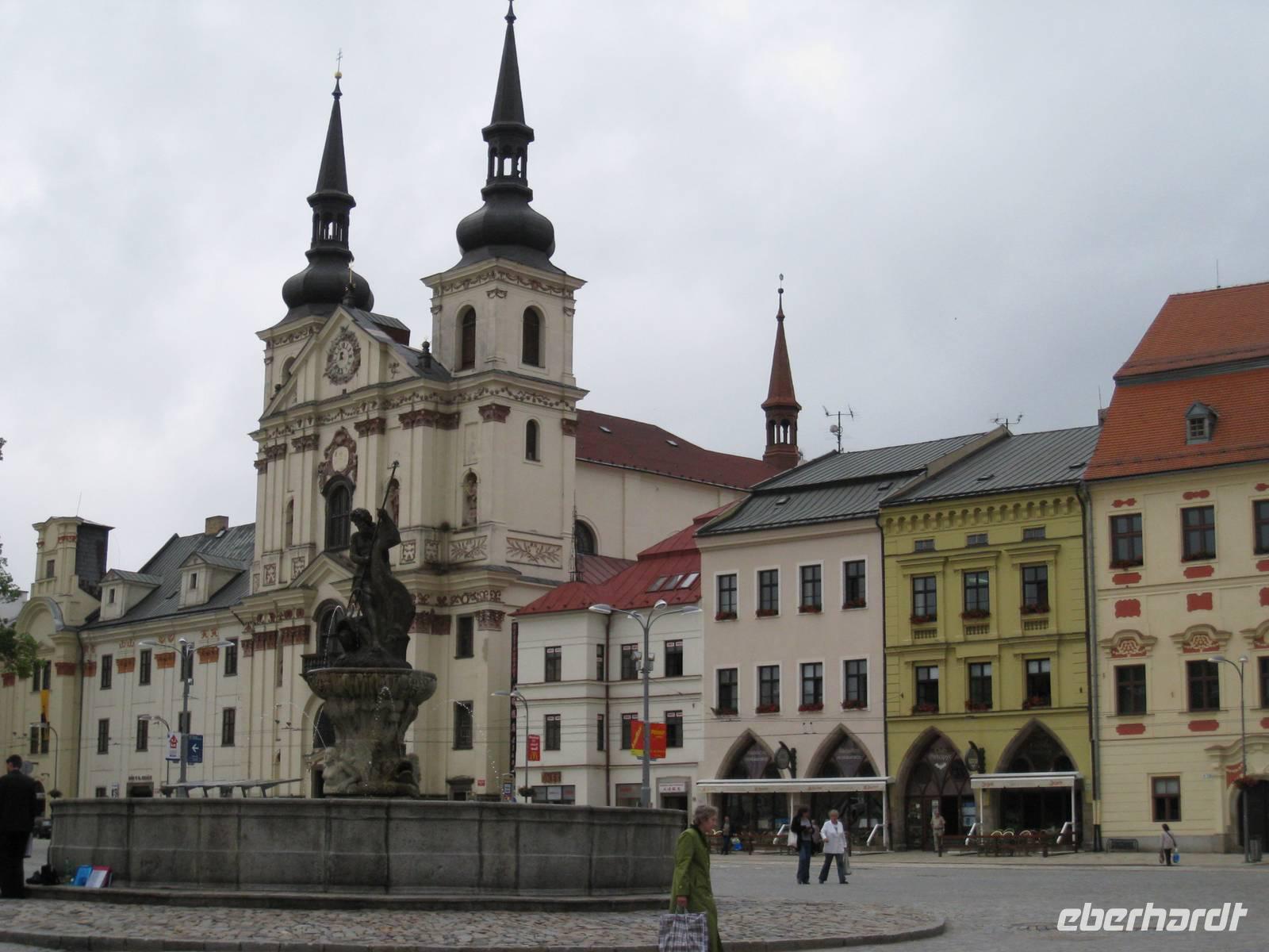 Einige feine Artikel waren zerspalten und bekleckst.Schlimmer als der Zustand der Dreifaltigkeitssäule wirkt der aus dem Jahre 1973 stammende Bau eines Warenhauses aus weißem Beton. Später sehen wir indess auf alten Stichen der Stadt, dass auch 1801 an genau jener Stelle ein Gebäude stand und der Marktplatz auch damals nicht allein eine einzig große Fläche war.Wir übernachteten im Hotel Gustav Mahler, einem ehemaligen Dominikanerkloster, das zu K.u.K. Zeiten Kaserne und dies bis 1991 weiter war. Nunmehr Hotel bietet es im Kreuzgang eine Ausstellung moderner Fotografie und in anderen Räumen Konzerte.