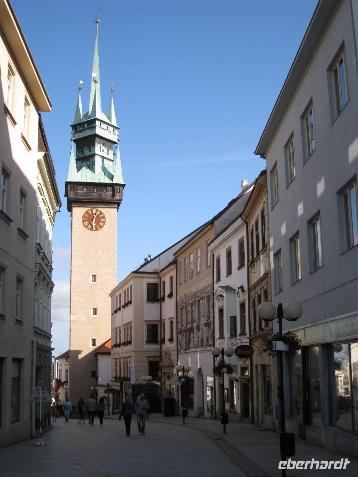 Tatsächlich bringt uns schon bald ein Stadtbus in das Zentrum nach Jihlava zum Masaryk-Platz.
