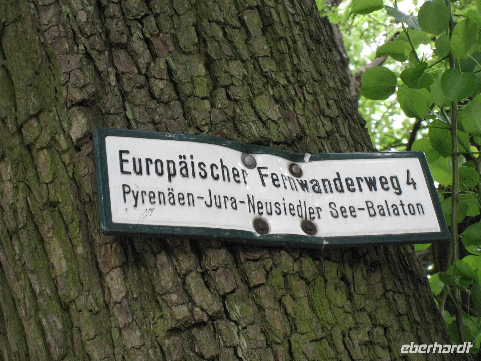 Bei violett-rosa Licht sitzen wir auf Marmorfußboden. Ein überaktiver (Ober?)Kellner drangsaliert seine Unterkellner. Als wir, in Wanderkluft nach kleiner Zeche das Haus verlassen, lässt er einen Inder alles wischen. So deutlich hat mir noch keine gezeigt, dass mein Besuch nicht gerade erwünscht ist. Wir wandern nun durch die Kurstadt, entdecken einen alten Aquadukt, der Wien noch immer mit Frischwasser aus den Bergen versorgt. Durch wieder-Wein gelangen wir nach Sooß. Werden wir von Leuten nach unserem Wanderziele angesprochen, so antworten wir nun zunehmend mit dem tatsächlichen Fernziel Syrakus. Uns entgegnet eine Mischung aus Ungläubigkeit und Bewunderung und unsicheren geografischen Kenntnissen - oder liegt Syrakus in Griechenland?