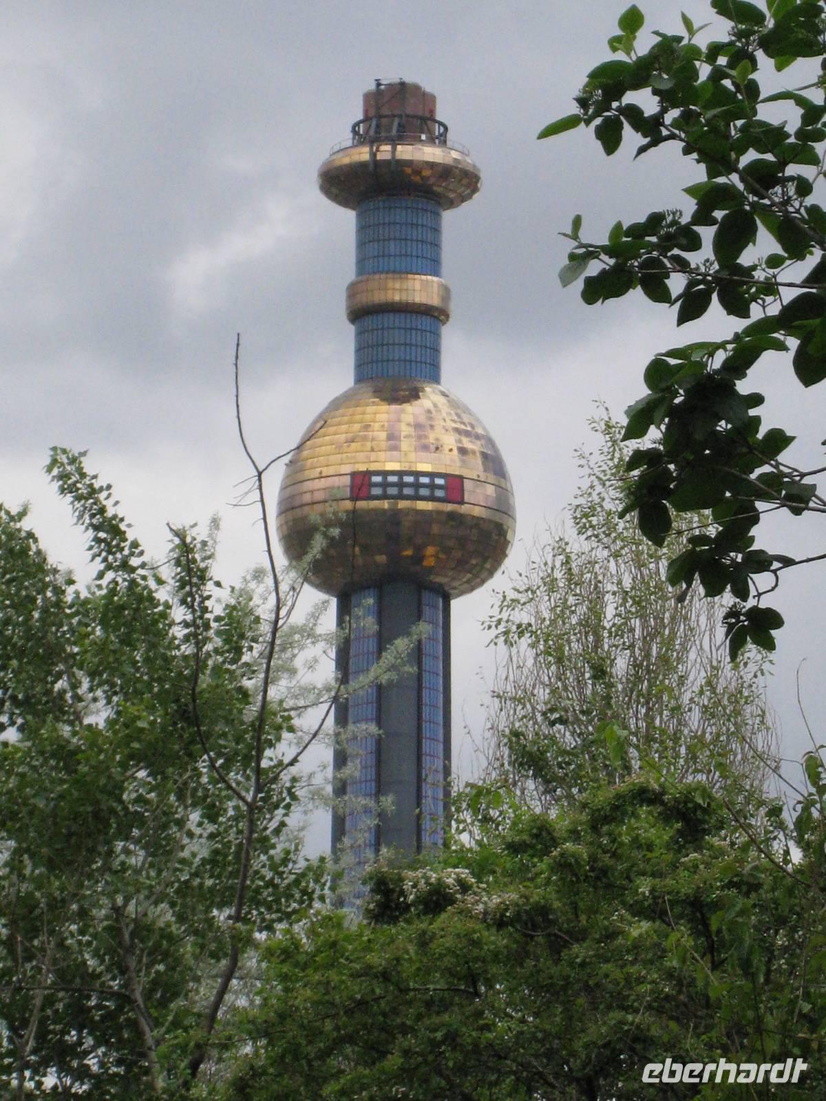 („Während der vierzehn Tage, die ich (in Wien) hausete, war nur einige Mal ein Stündchen reiones, helles Wetter, aber nie einen ganzen Tag; und die Wiener klagen, daß dieses fast beständig so ist...Von dem Wiener Theaterwesen kann ich Dir nicht viel Erbauliches sagen. Die Gesellschaft des Nationaltheaters ist abwechselnd in der Burg und am Kärthner Tore, und spielt so gut sie kann. Das männliche Personale ist nicht so arm als das weibliche. ... Der weibliche Teil der Gesellschaft, der auf den meisten Theatern etwas arm zu sein pflegt, ist hier vorzüglich; und man ist genötigt die Rolle der ersten Liebhaberin einer Person zu geben, die mitaller Ehre Äbtissin in Quedlinburg oder Gandersheim werden könnte. Die Dame ist gut, auch gute Schauspielerin; aber nicht mehr für dieses Fach.")Wir steigen gleich hinter dem Hotel steil den Kottesteig hinauf. Durch lockere Wohnbebauung einer Edelwohngegend mit Blick auf die Donau geht es auf windendem Bergpfad hinauf zum Leopoldsberg. Hier auf der Höh dann zum Kaltenberg mit modernistischem Hotel und International Bussiness Management School. Der Blick von hier auf Wien zieht auch bei dunstigem Wetter Ausflügler, Touristen und natürlich die Jüngelchen des internationalen Managements an.