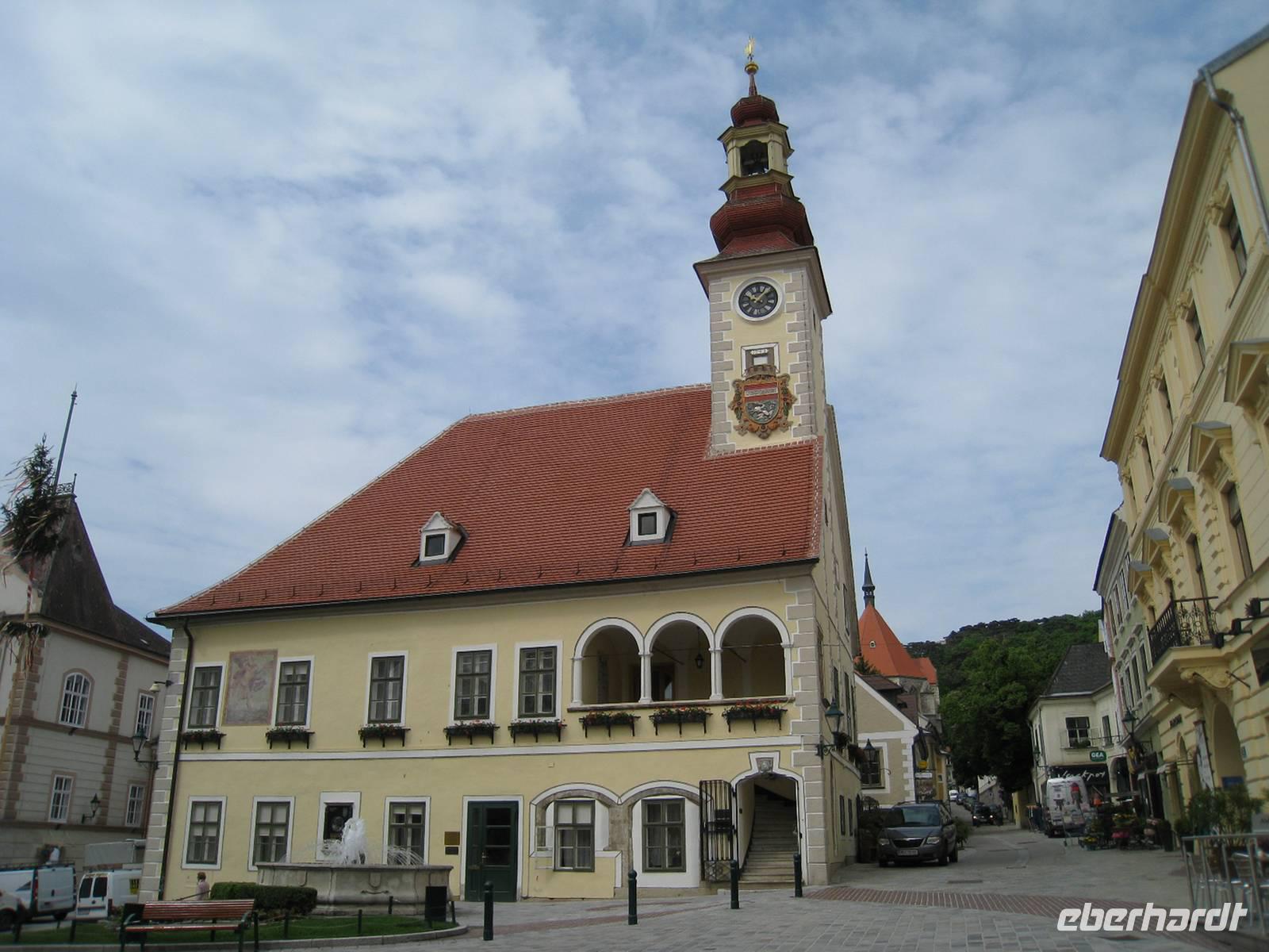 („An der Barriere (zu Wien) wurden wir durch eine Instanz angehalten und an die andere zur Visitation gewiesen. Ich armer Teufel wurde hier in bester Form für einen Hebräser angesehen, der wohl Juwelen oder Brabanter Spitzen einpaschen könnte.... Mein ganzer Tornister wurde ausgepackt, meine weiße und schwarze Wäsche durchwühlt, mein Homer beguckt, mein Theokrit herumgeworfen und mein Virgil beschaut, ob nicht vielleicht etwas französischer Konterband darin stecke; meine Taschen wurden betastet und selbst meine Beinkleider fast bis an das heilige Bein durchsucht: alles sehr höflich; so viel nämlich Höflichkeit bei einem solchen Prozesse Statt finden kann... Meine Briefe wurden mir aus dem Taschenbuche genommen, und dazu mußte ich einen goldnen Dukaten eventuelle Strafe hinterlegen, weil ich gegen ein Gesetz gesündigt hatte, dessen Existenz ich gar nicht wußte und zu wissen ich gar nicht gehalten bin. „Du sollst kein versiegeltes Blättchen in Deinem Taschenbuche tragen.")Der Weg führte uns in die Au - die Marschlandschaft der Donau zwischen Tulln - Stockerau und Kornneuburg. ...Auf der anderen Seite geht es nun an der (blauen?) Donau entlang. In Klosterneuburg geht es zum eindrucksvollen Kloster mit Stiftskirche und späte durch alte Gassen mit Winzern hinab zum Hotel nach dem Ortsteil Meidering.
