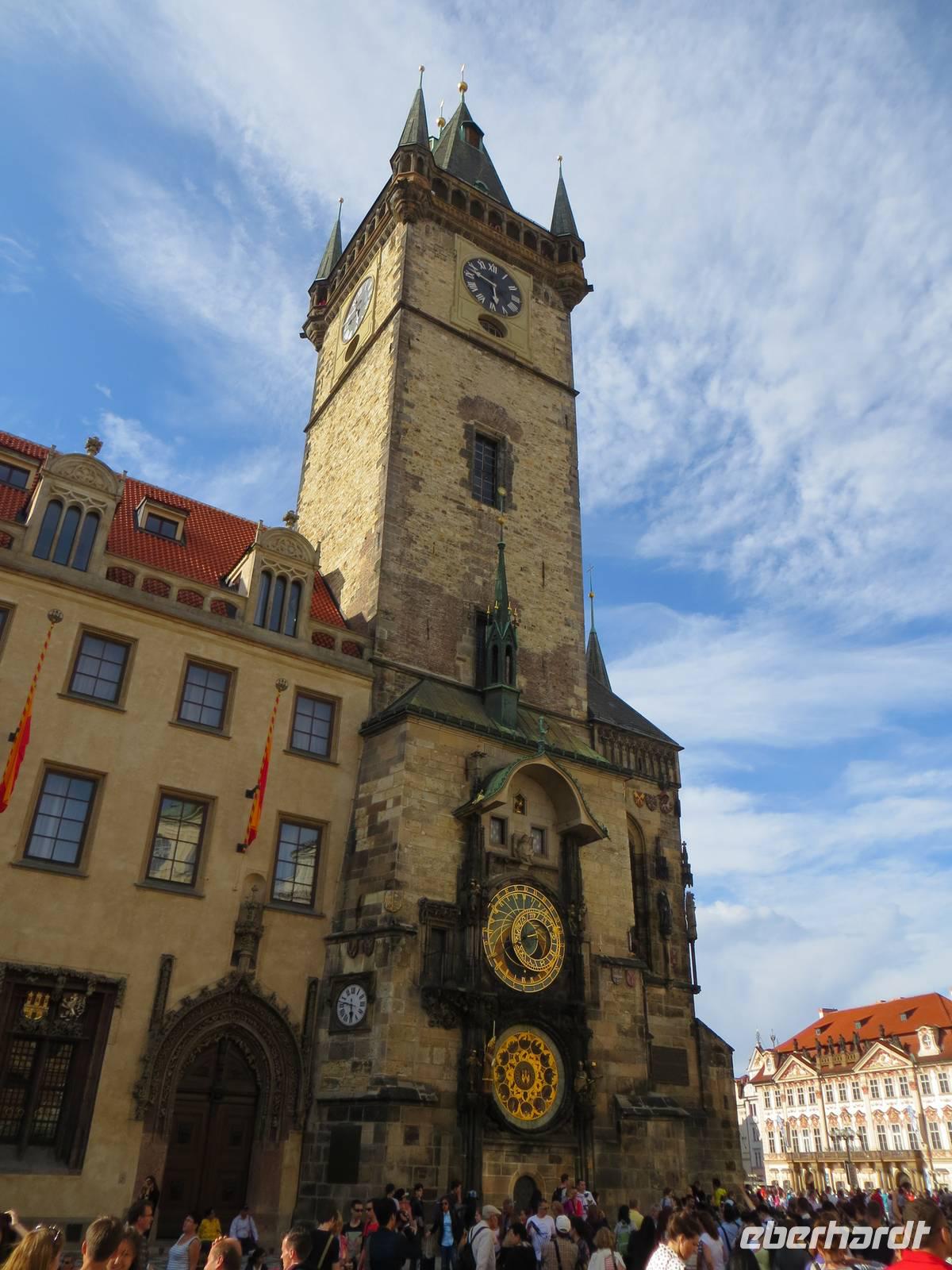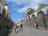 Den leichten, aber durchaus steilen Weg absolvierten wir in knapp einer Stunde und genossen manchen Ausblick in die Runde. Auf dem Berg steht seit dem 11. Jahrhundert eine Rotunde und erinnert heute daran, dass der Berg über Jahrhunderte ein wichtiges Pilgerziel freiheitlich denkender Tschechen, auch unabhängig ihres Glaubens war. Vom Rip ging es mit Bus nach Melnik, der Stadt über dem Zusammenfluss von Elbe und Moldau. Schön das wieder hergestellte Schloss der Lobkowitzer mit „Briefkuvertsgrafitto" und Sonnenuhr. Nach diesem Mittagsbummel ging - teilweise bei Starkregen und mit Straßensperrung bei Nelahosevis - es nach dem Prager Stadtteil Holesovice.