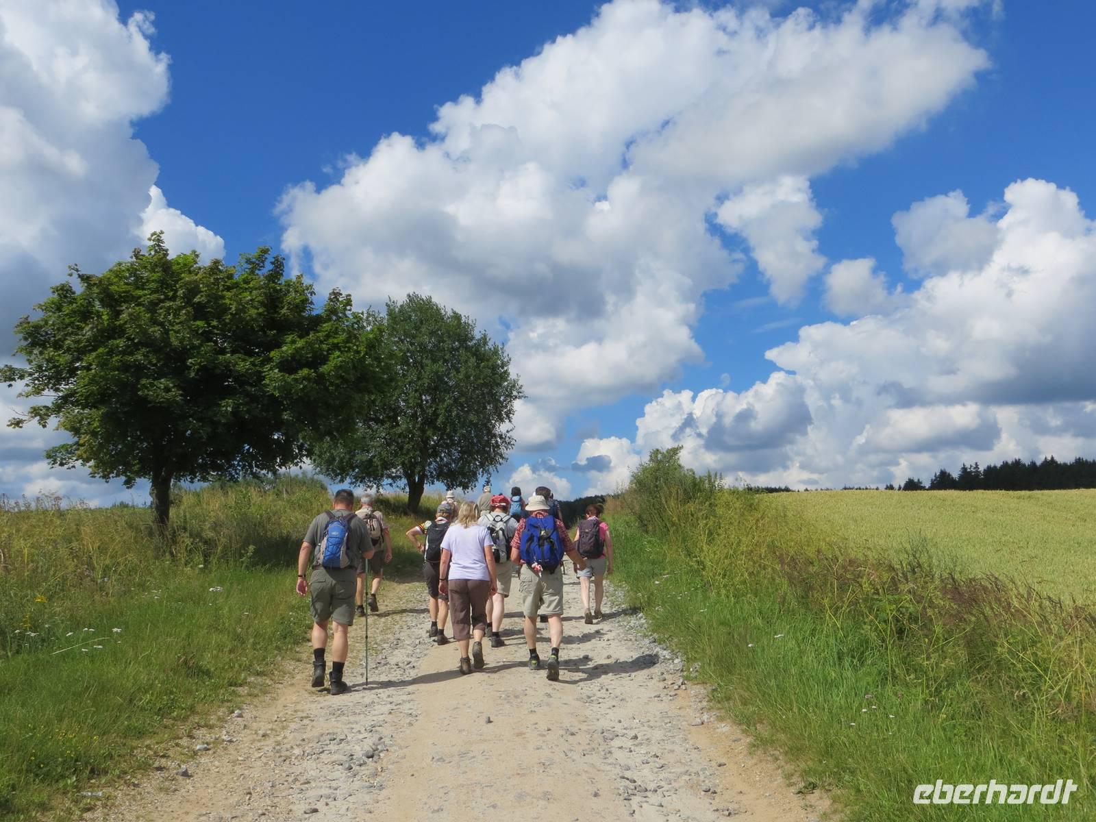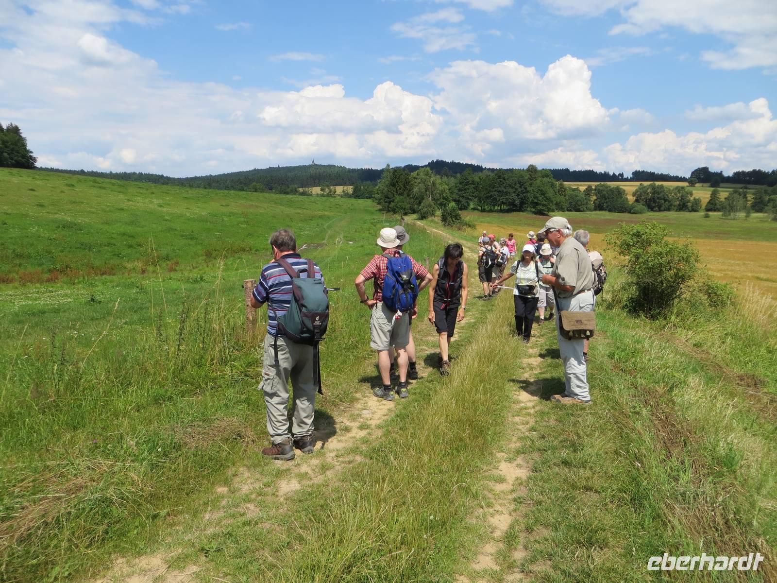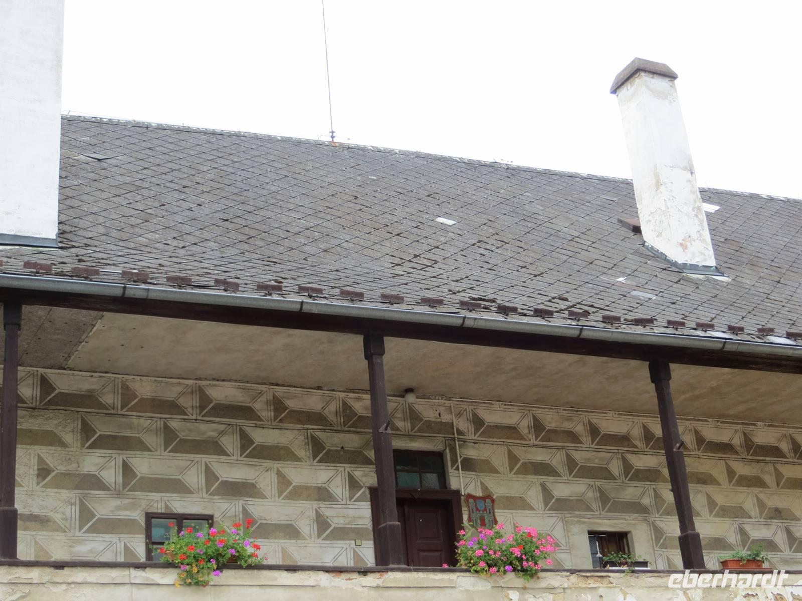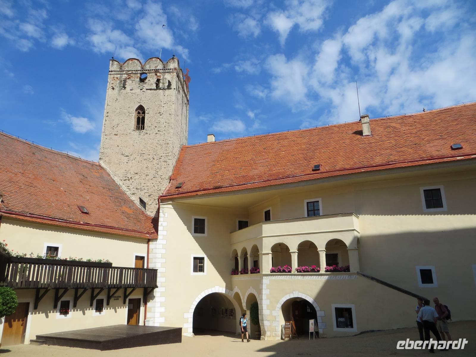 Nach kurzer Zeit brachte uns der Bus nach Hodince, einem Dorf bei Trest, unserem Ausgangspunkt für die Wanderung über den Rostejn nach Telc. Zunächst durch Felder führte der Weg dann leicht aufwärts durch abwechslungsreiche Waldlandschaft: breite Waldwege wechselten mit schmalen grasigen Pfaden, 90-jährige Fischten mit Buschwald, dazwischen Bergwiesen voller Blüten und Aussichten. Gegen Mittag erreichten wir die guterhaltende Burg und besichtigten die Rundgänge sowie die kleine Kapelle; vom Turm schauten wir auf eine hügelige, grüne Landschaft. Ein Mittelgebirge hatten die die meisten Wanderer hier nicht erwartet; aber der Name des Bezirks deutet darauf hin: Vysocina - (böhmisch-mährisches) Hochland.
