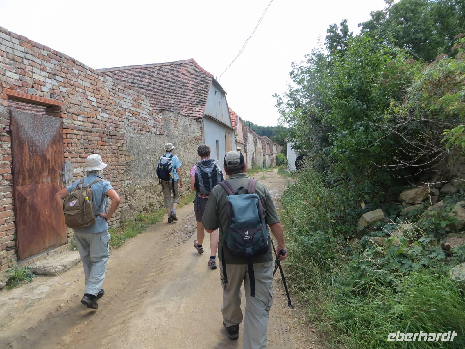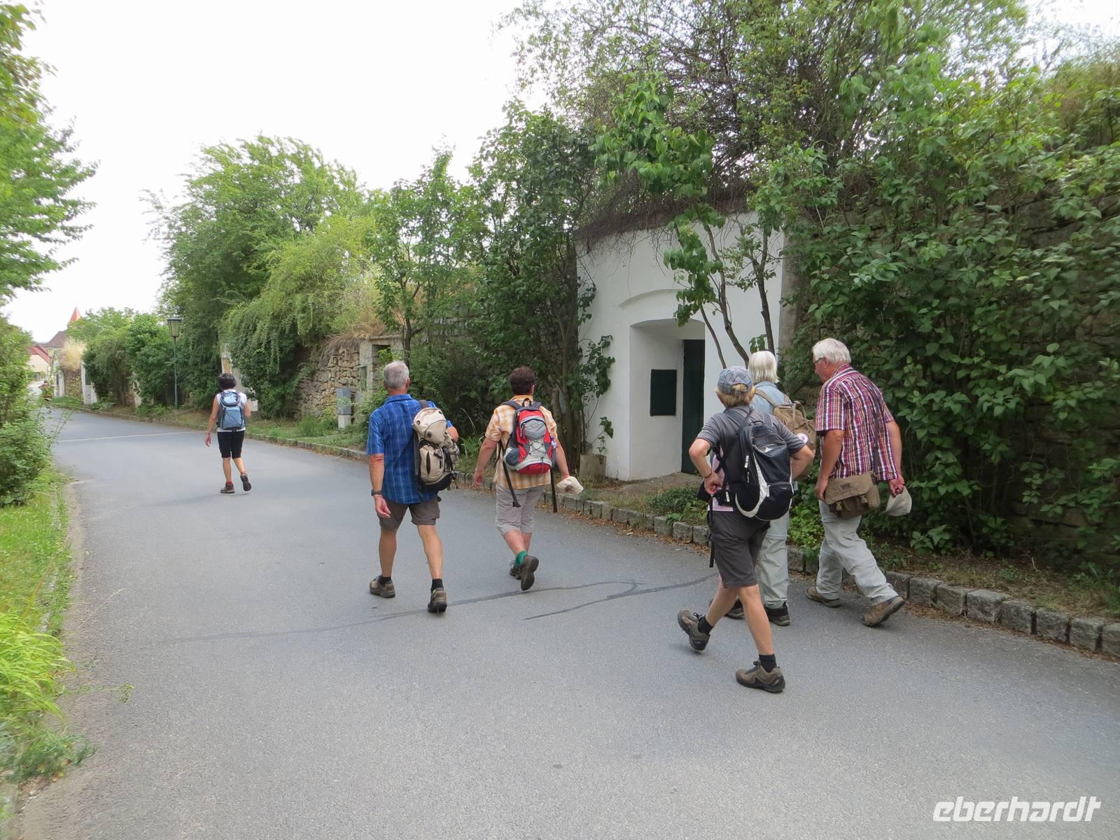 Schnell gelangten wir zum Startpunkt unserer Wanderung, den wir bereits am Vorabend besucht hatten. Nun also: hinab zur Thaya, hinauf durch Gartenanlagen, vorbei an Heiligenfiguren auf einem alten Pilgerpfad. Das Ostplateau des Thaya-Nationalparks wir als versteppt in der Literatur beschrieben und birgt zahlreiche typische Pflanzen von Trockenrasenflächen. Unser Weg führt weiter durch mährische Winzerorte - wir konnten einem - ja, leider wieder nur - Veltliner nicht widerstehen. Eine ganz andere Natur empfing uns, als wir mit kleinem Westschwenk nochmals tief unten im Thyatal in der Gegend einer alten Mühle stehen. Mittagspause dann in Hnanice in der Gaststätte der Winzergenossenschaft. Die Grenzen sind offen: mittlerweile kann man die Staatsgrenze zwischen Tschechien und Österreich auch auf Wanderwegen überqueren. Wir nutzten dies und wanderten über den Hühnerberg, weiter auf dem Pilgerpfad und erreichten das österreichische Oberretzbach im Retzer Land. Eine abwechslungsreiche Wanderung über fünfzehn Kilometer ging hier zu Ende. Mit dem Bus brauchten wir noch ein Weilchen und erreichten am späten Nachmittag unser Trend-Hotel in Wien. Die Hotelküche hielt Tomatensuppe, Wiener Schnitzel und Apfelstrudel bereit - leistungsgerecht ok, aber donaubreit an Wiener Gourmetgastronomie vorbeigeschippert.