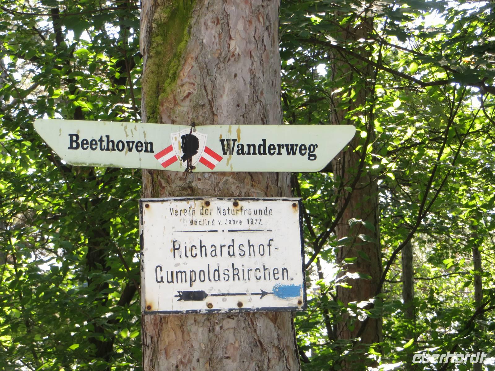 Mancher hatte sich wohl den Wienerwald flach wie die Dresdner oder Dübener Heide vorgestellt - aber der Gebirgszug ist der Ostrand der österreichischen Kalkalpen. Der Bus brachte uns nach Mödling, wenige Kilometer südlich von Wien. Vorbei am hübschen Rathaus und alten Bürgerhäusern erreichten wir den Rand der Altstadt. Von hier ging es steil in Kehren den Weg hinauf. Mehrfach konnten wir kleine Kalksteinkoppen besteigen und Aussicht auf den Wienerwald und die östliche Ebene bis ins Burgenland genießen. Als mittlerer Höhenweg führt der Beethovensteig nach Süden. Wir nutzten ihn, um an der Rudolphshütte nach dem bekannten Winzerort Gumpoldskirchen abzusteigen. In einer Nebengasse am Ortsrand öffnete 12 Uhr die erste Heurigenwirtschaft. Unter schattenspendenden Bäumen war ein halber Liter G´spritzter (weiß oder rot) ein durstlöschender Augenblick. Anschließend stiegen wir nochmals auf, um im Schatten auf dem Beethovensteig weiter Richtung Baden zu wandern. Irgendwo einmal etwas unaufmerksam, gelangten wir recht bald hinab durch die Rebflächen auf den Wasserleitungspfad und ließen uns am Ortsrand von Pfaffstätten vom Bus abholen. Dieser brachte uns in wenigen Minuten nach Sooß, wo wir uns beim Riedinger-Winzer angemeldet hatten. Unter schattigen Pergolen kam der Wein - ganz nach Geschmack der Besteller - zügig und jeder könnte sich an der Theke mit kalten und warmen Gerichten das Passende aussuchen: Backhendel, Blunz, Sülze, Käsecremes, Schweinsbraten, Wurstsalat. Nach zweieinhalb Stunden war zwar die Weinkarte noch nicht durchprobiert, aber Zeit zum Aufbruch, um gegebenenfalls am Abend noch individuell von Wien Abschied zu nehmen.