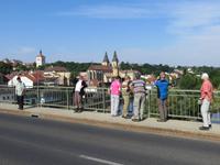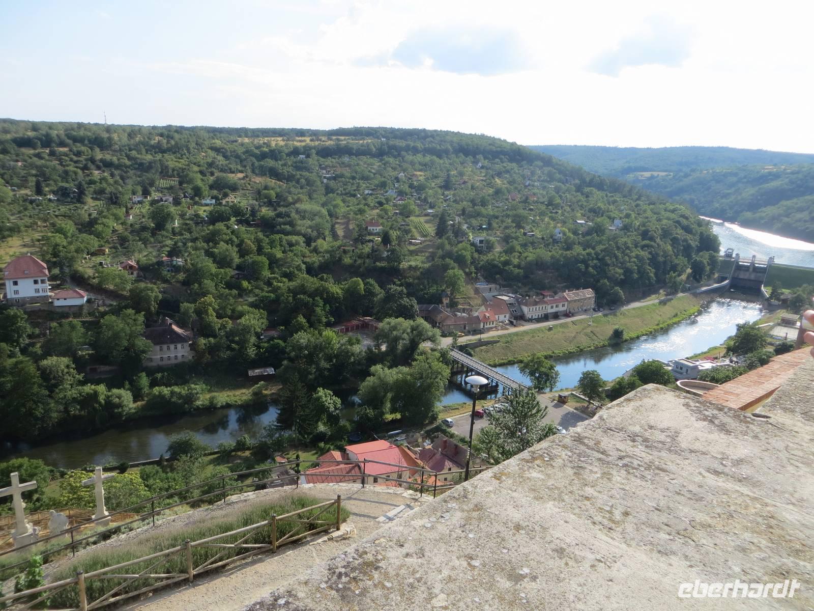 Nach der Mittagspause im Ort starteten wir zur vielleicht doch anspruchsvollsten Tour der Reise: zunächst entlang des Flusses ging es aufwärts und später im mittelhohen Bergland sogar über Felsgestein. Der sich unter uns windende Fluss war selten zu sehen, aber manche Waldöffnung gewährte Ausblick auf die nahe österreichische Seite des Nationalparks. Nach vierstündiger Wanderung erreichten wir in Lukov unseren wartenden Bus, der uns nach Znojmo brachte. Bevor wir das Hotel kennenlernten, bummelten wir über den Ober- und den Untermarkt des hübschen Städtchens am Hang bis hinüber zu St. Nikolai, dem markanten Dom der Stadt. Noch heute prägen vier Klostergebäude das Antlitz von Znojmo. Vom Ausblick am Dom zeichneten wir bereits gedanklich unseren Wanderweg für den kommenden Tag: hinab zur Thaya, hinauf durch Obstgärten auf ein Hochplateau am verkarsteten Ostrand des Nationalparks Podyji.