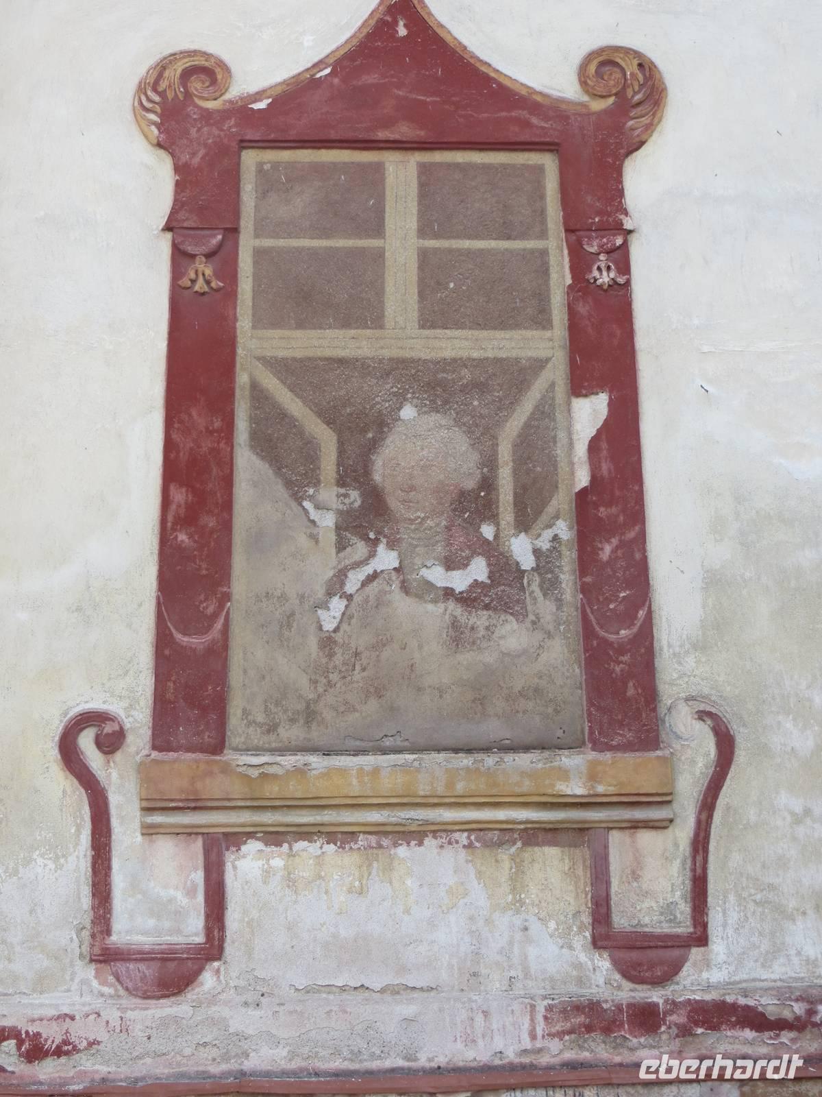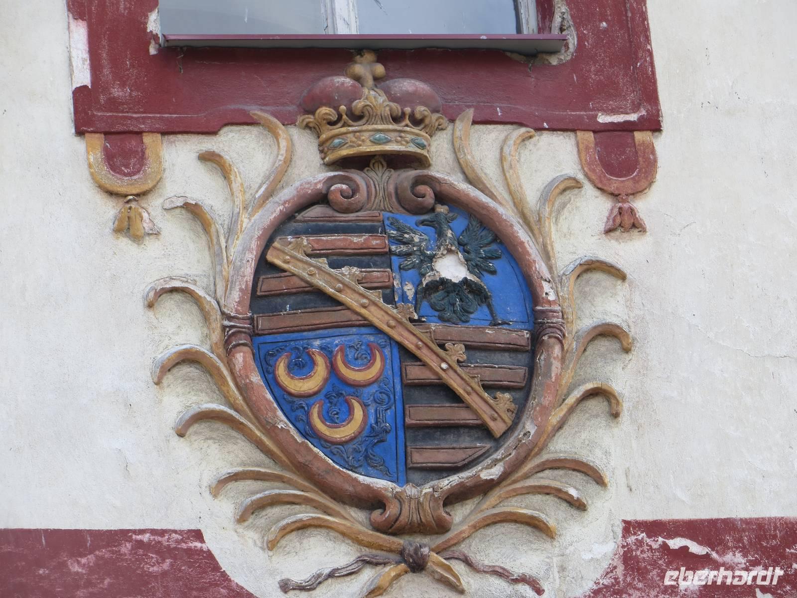Die Strecke mutet kurz an, aber eine reichliche Stunde fährt der Bus doch von Telc bis Vranov nad Dyji - oder wie es auf Österreichisch-Deutsch heißt: Frain an der Thaya. Wer wie wir im Ort den Bus verlässt, steigt nochmals einen Kilometer nach oben zum prächtigen Schloss auf dem Felsen. Die Pause bis zum deutschsprachigen Führungsbeginn nutzten wir für das Suchen der besten Fotomotive. Der weißgelbe Barockbau glänzte in der heißen Sommersonne. Das barocke Schloss mit seinem bekannten Ahnensaal versprach nur wenig Abkühlung, aber das Erleben eines der schönsten Schlösser Mährens seiner Zeit. Von den Freiterrassen schauten wir hinab ins Thayatal, suchten bereits vorab unseren Wanderwegverlauf und besichtigten noch die großzügige Schlosskapelle.
