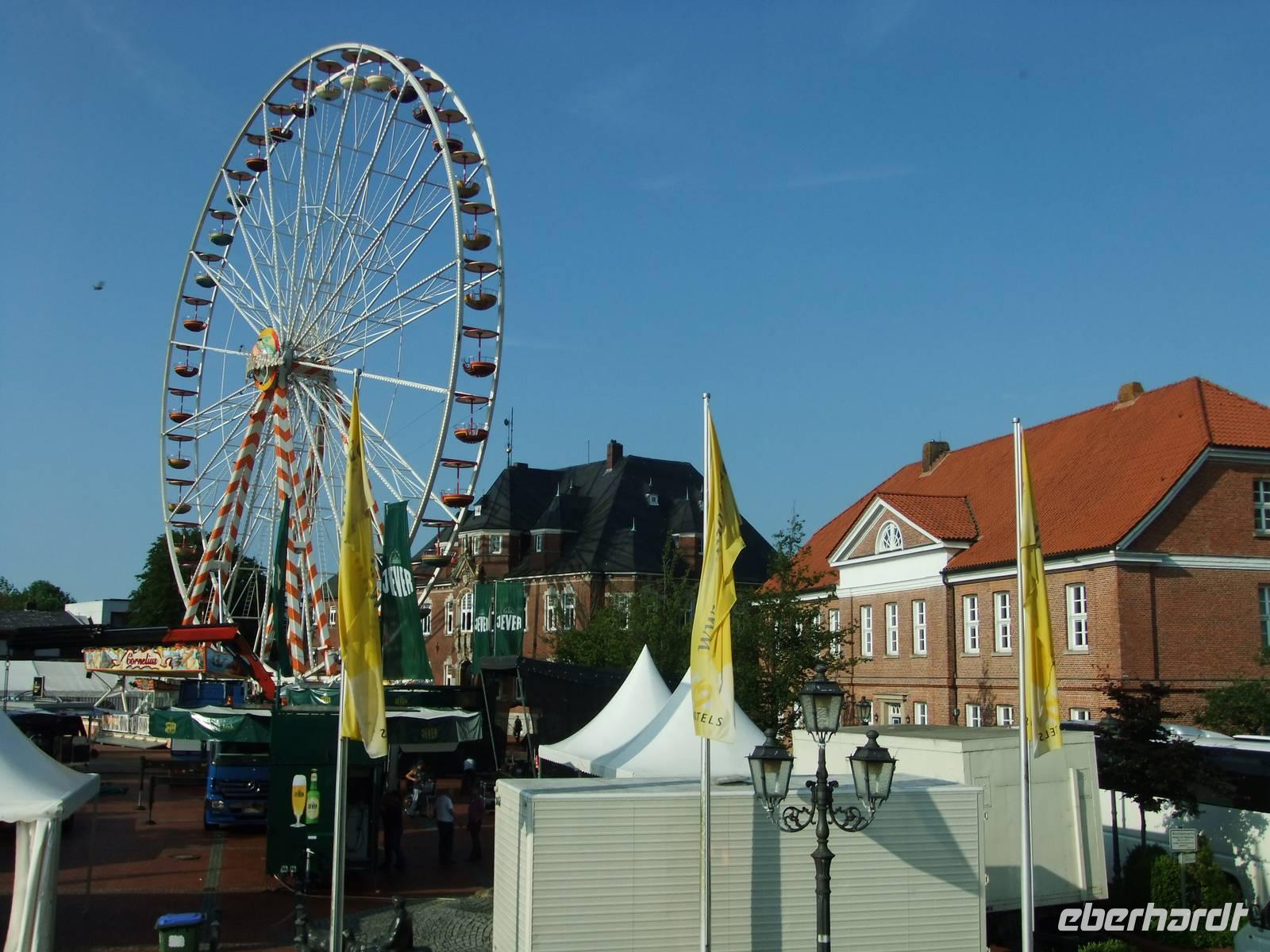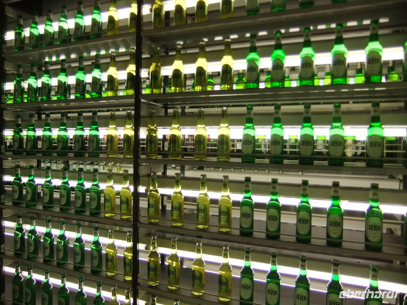 Nun verlassen wir erstmal die Küste und fahren nach Jever. Der Name der Stadt ist durch die gleichnamige Biermarke in ganz Deutschland bekannt. Schon von weitem sehen wir die verspiegelten Türme des Friesischen Brauhauses. Hier werden wir zu einer Führung erwartet. Zuerst besuchen wir das historische Brauereimuseum. Hier erhalten wir einen Einblick, wie vor rund 100 Jahren der Brauereialltag ablief. Danach können wir den modernen Produktionsbetrieb besichtigen. Besonders interessant ist es in der großen Halle mit den Abfüllanlagen. Pro Stunde laufen hier ca. 60.000 Flaschen über die langen Förderbänder. Nun möchten wir natürlich auch wissen, wie das Jever-Bier schmeckt. Laut Werbeslogan "Wie das Land, so das Jever - friesisch herb". Vier Sorten stehen bei der Verkostung zur Auswahl: Jever Pilsener, Jever Light, Jever Fun und Jever Lime. Jeder erhält als Erinnerung noch ein Jever-Glas.