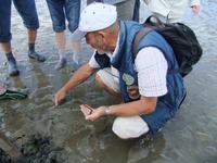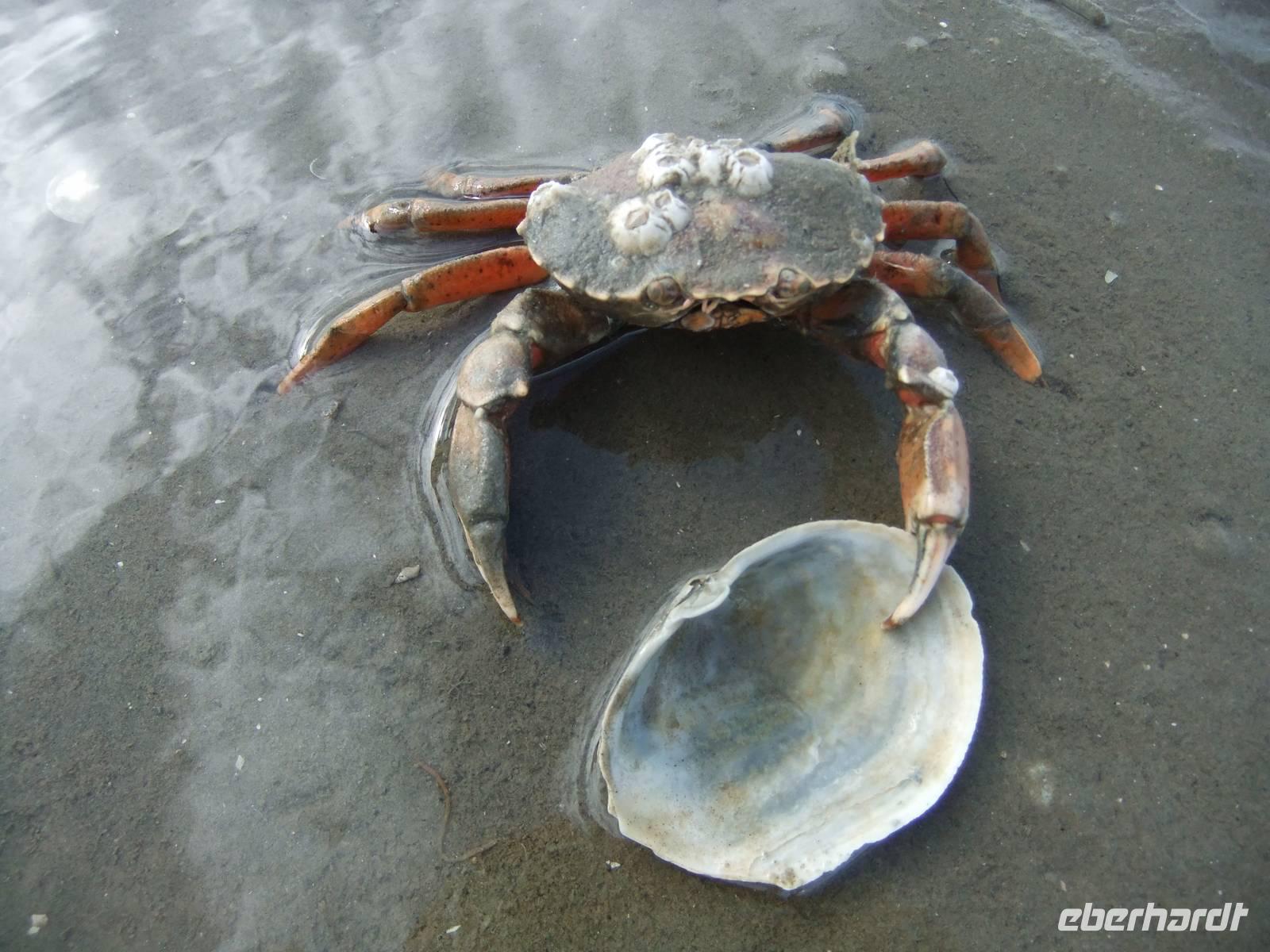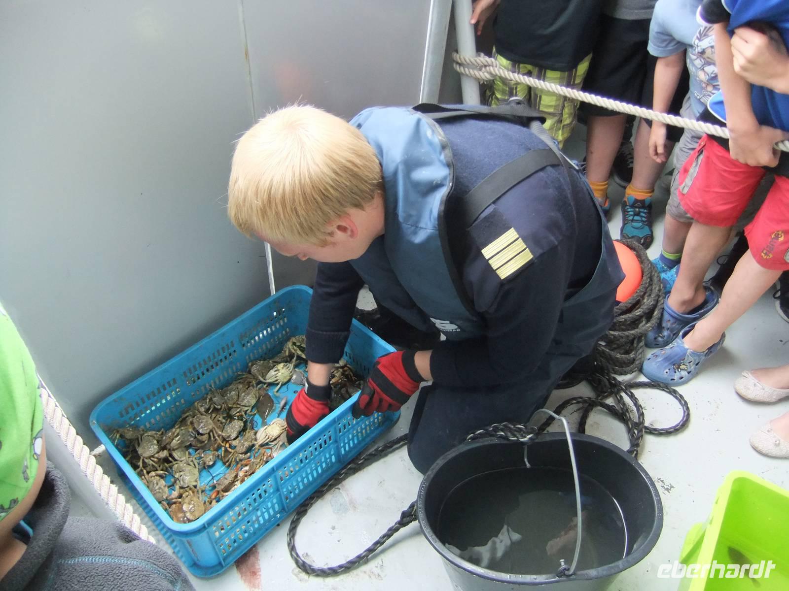 Von Günter erfahren wir Interessantes über Ebbe und Flut, über Priele und die Ostfriesischen Inseln. Wir entdecken so manche Muschel im Sand und graben auch einen Wattwurm aus. Außerdem fängt Günter für uns Garnelen und Seenadeln. Und dann können wir sogar die Krabben beim Liebesspiel beobachten. Nach zwei Stunden sind wir alle erstaunt, wie schnell die Zeit verging.