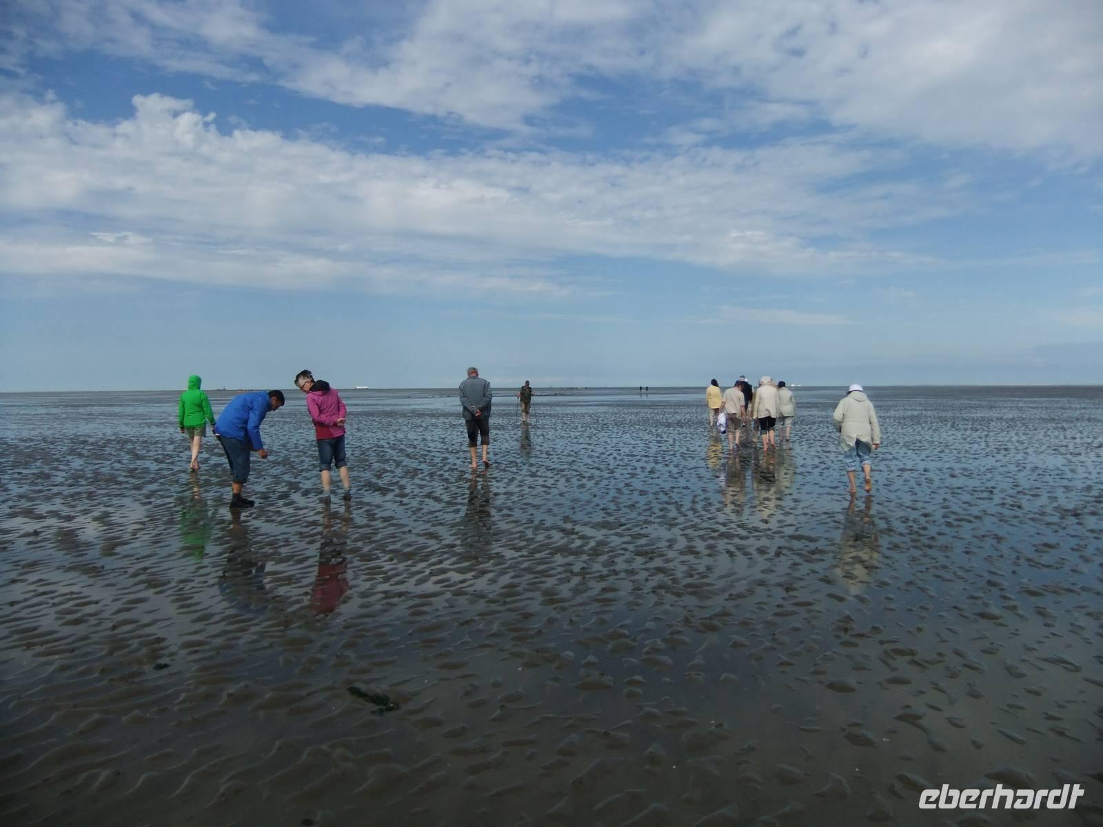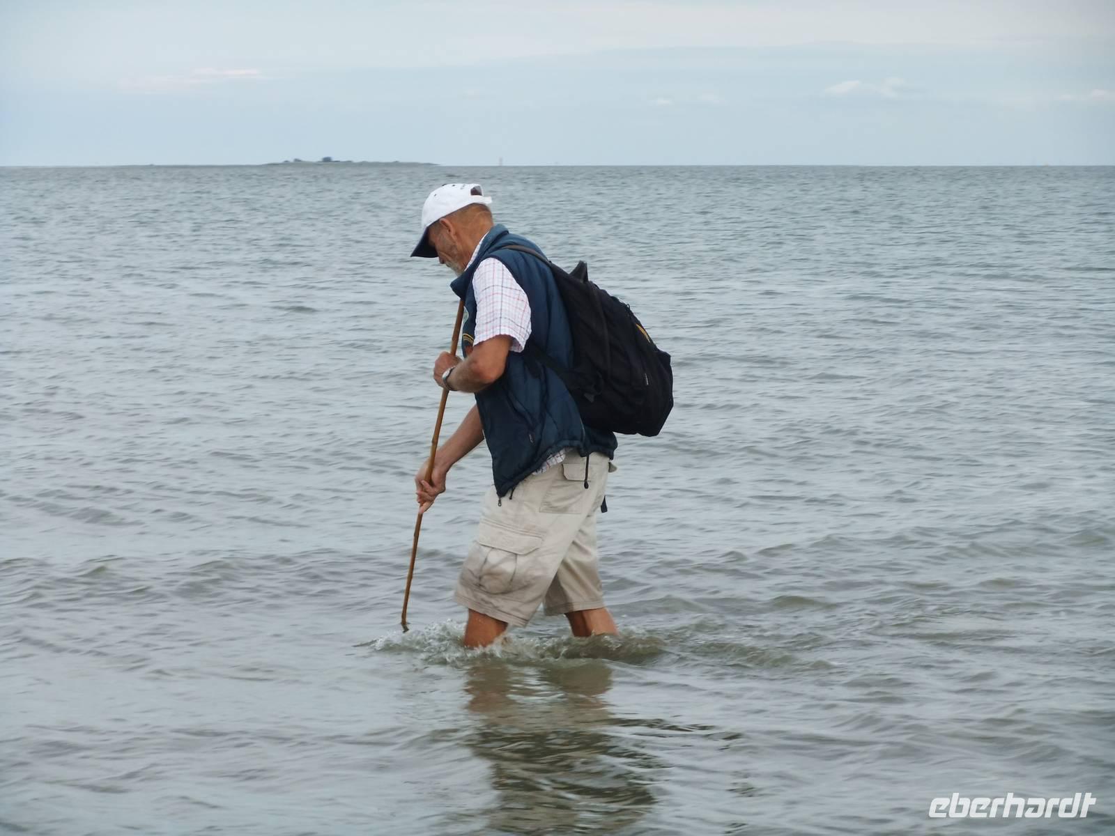 Gut gelaunt geht es wieder ans Meer. Am Strand von Schillig sind wir mit Wattführer Günter verabredet. Schuhe und Strümpfe werden ausgezogen - und auf geht's zur Wattwanderung.