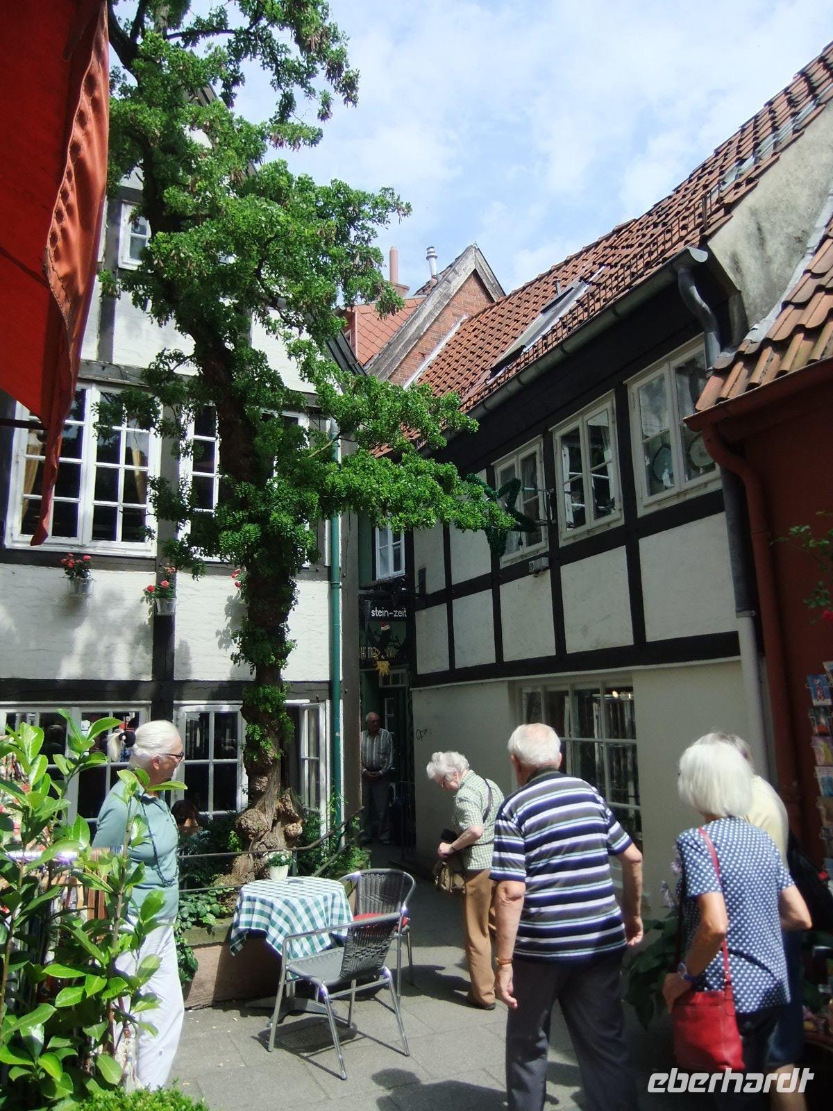 gehen zum Schnoorviertel mit manch kleinem Haus.