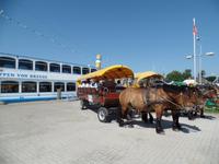 Auf der autofreien Insel warten zwei Kutschen auf uns, die uns über die schöne Insel nach Kloster bringen.