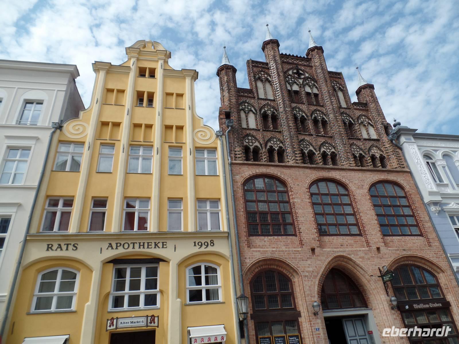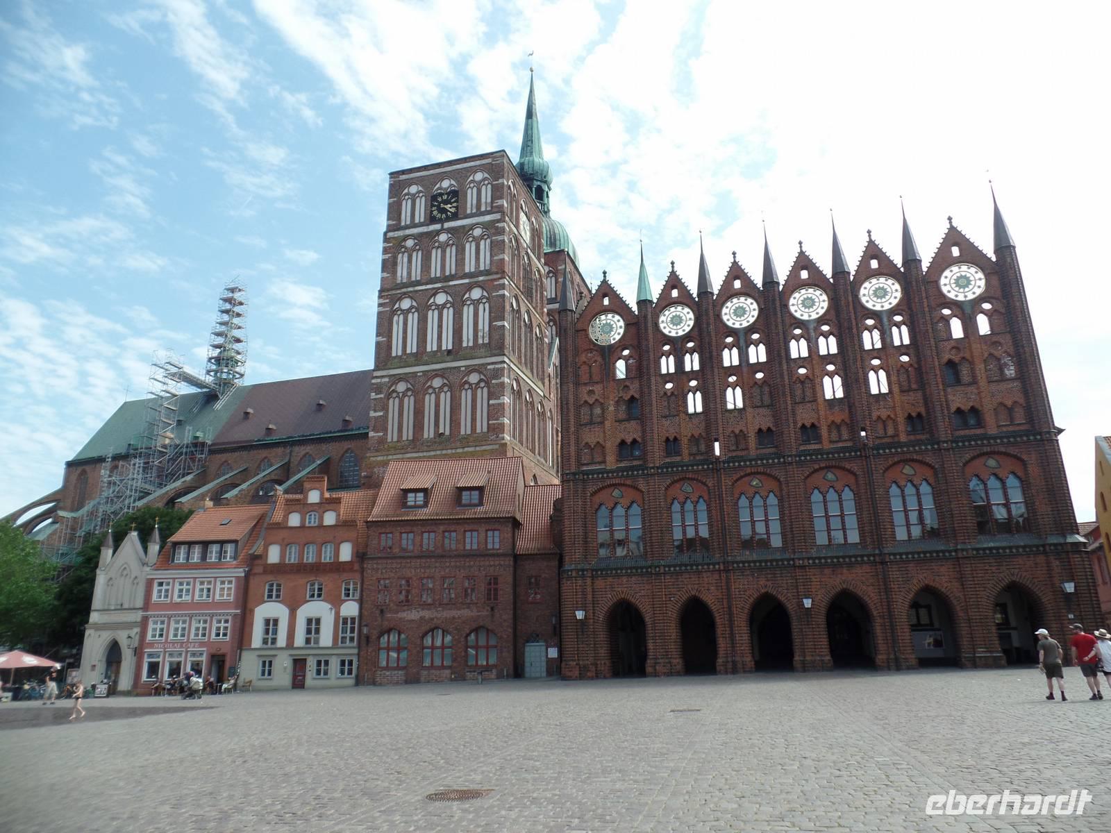 Sehenswert ist auch das Stralsunder Rathaus. Es zählt zu den schönsten Profanbauten der norddeutschen Backsteingotik, und gehört zu den frühesten, noch erhaltenen Gebäuden der Stadt. Durch die Schauwand erhält das Rathaus sein repräsentatives Aussehen.