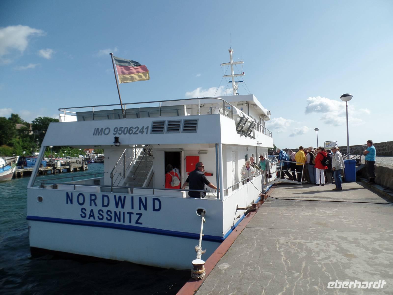 Mit dem Schiff der Reederei Kipp starteten wir vom Hafen in Breege nach Vitte.