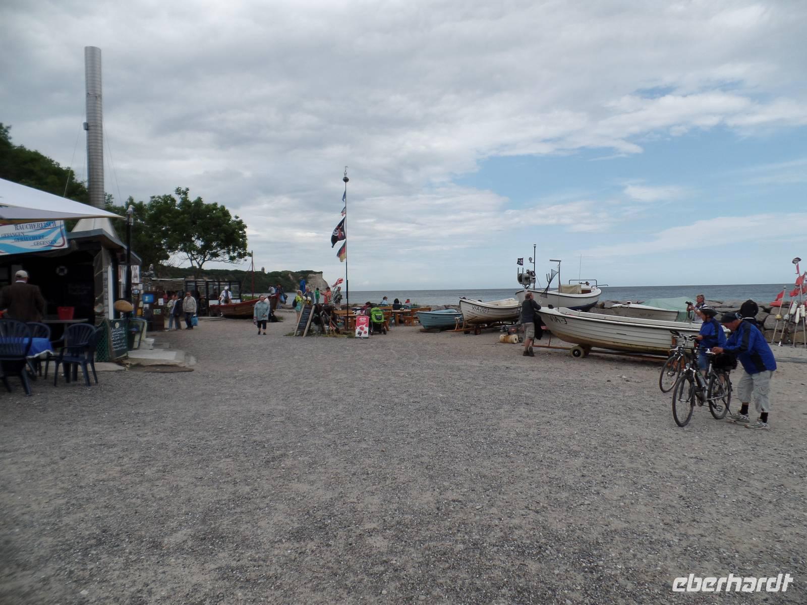 Vom Leuchtturm aus wanderten wir oberhalb der Küste zum kleinen Fischerstädtchen Vitt mit seinen schönen reetgedeckten Dächern. In Vitt hatten wir Zeit zum Bummeln und zum Spazierengehen am Strand. Zurück nach Putgarden ging es dann wieder mit der kleinen