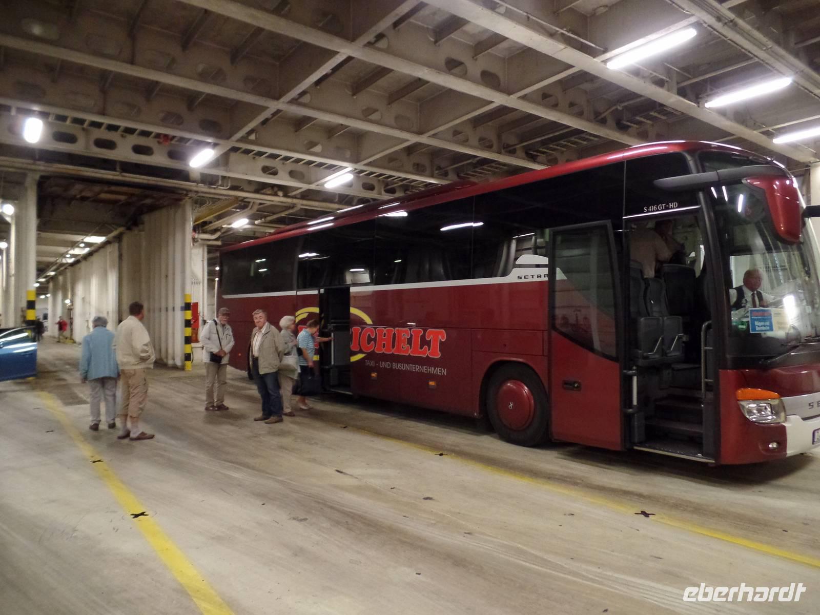 Durch starken Wind kam diese bereits verspätet an. Auch auf der Überfahrt von über 3 Stunden änderte sich das Wetter nicht. Im Gegenteil, bei Windstärke 10 schaukelte die Fähre durch die hohen Wellen.