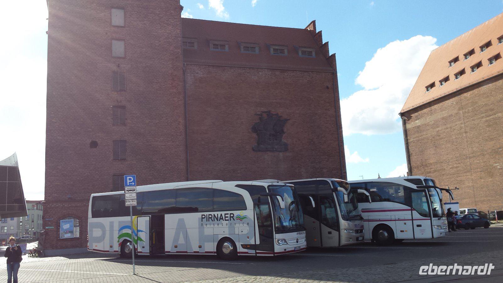 Weiter ging es bei herrlichem Wetter über den Berliner Ring und die BAB 11 sowie die BAB 20 in Richtung Stralsund, wo wir uns am Ozeaneum mit unserer Stadtführerin trafen.