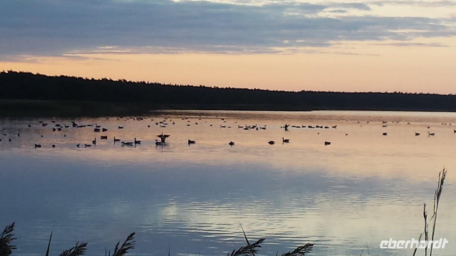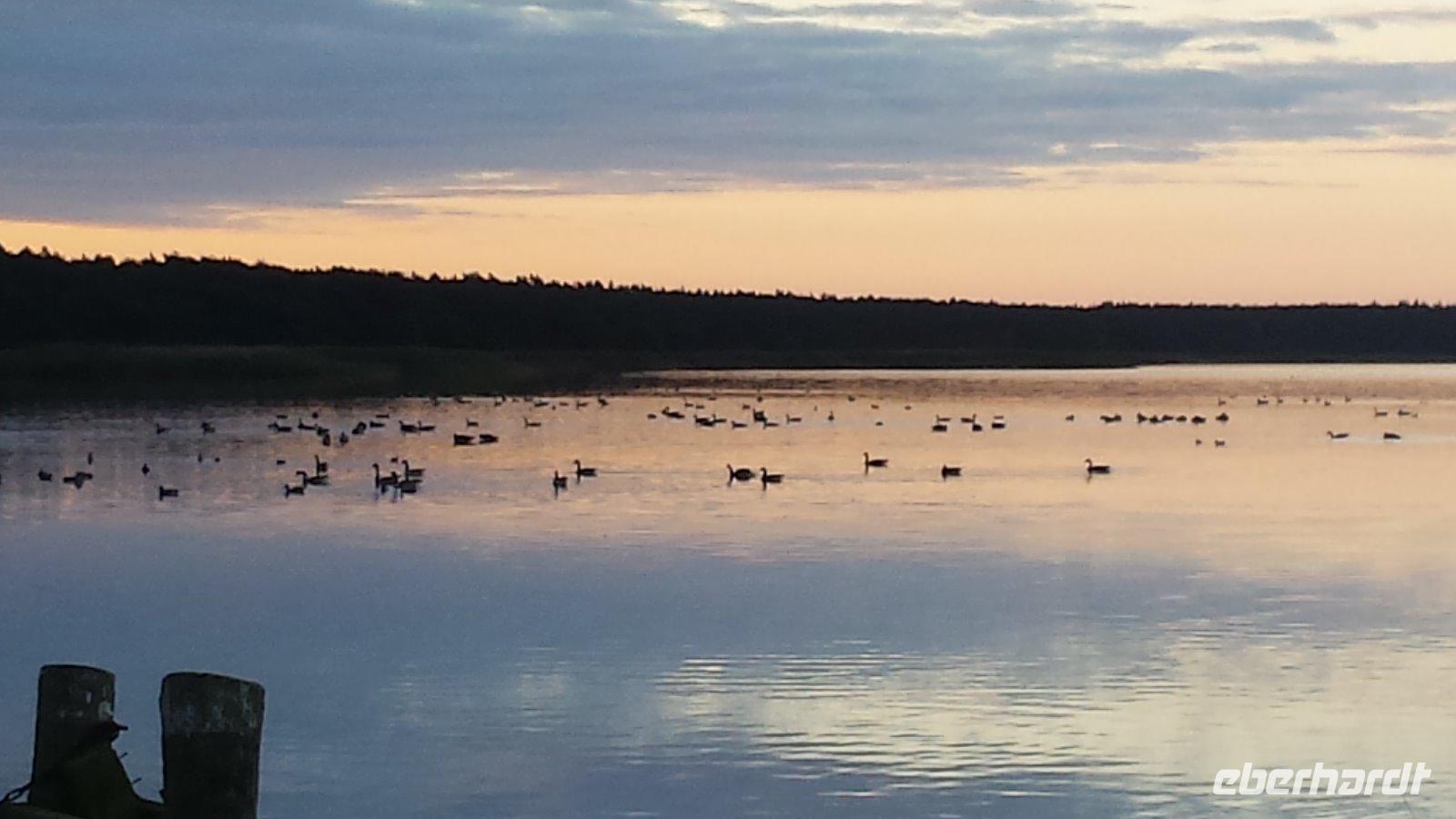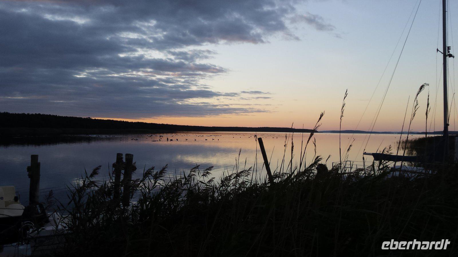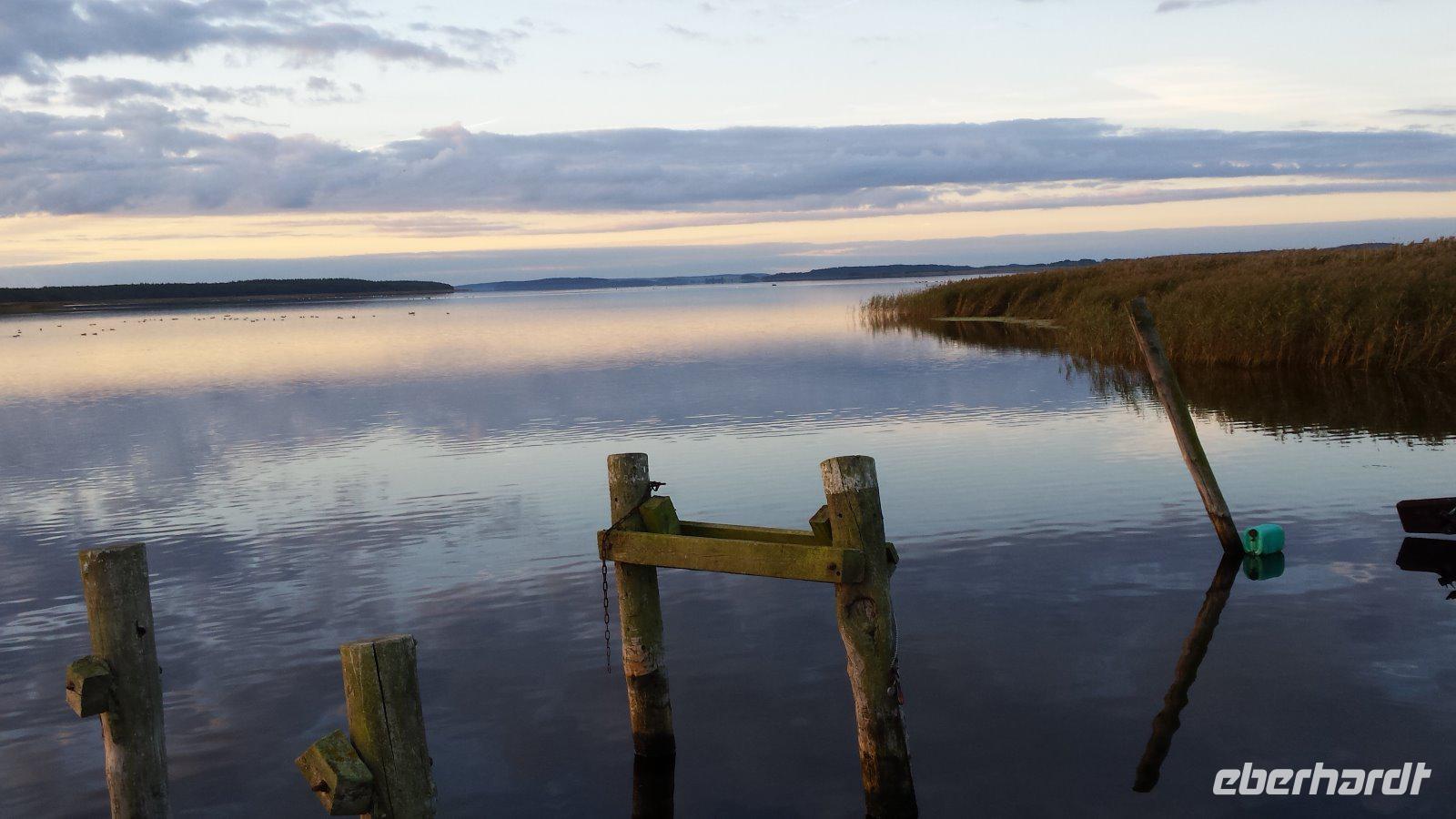 Nach der freundlichen Begrüßung durch den Hotelchef, Herrn Plambeck und dem Abendessen standen schon erste Erkundungen des Ortes oder zumindest des weitläufigen Hotelgartens, direkt am Breeger Bodden, an.