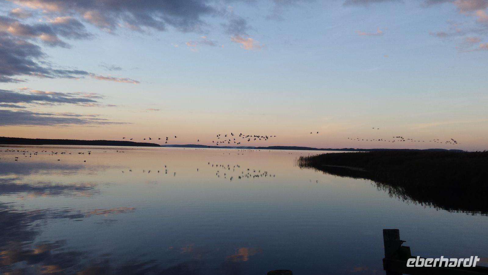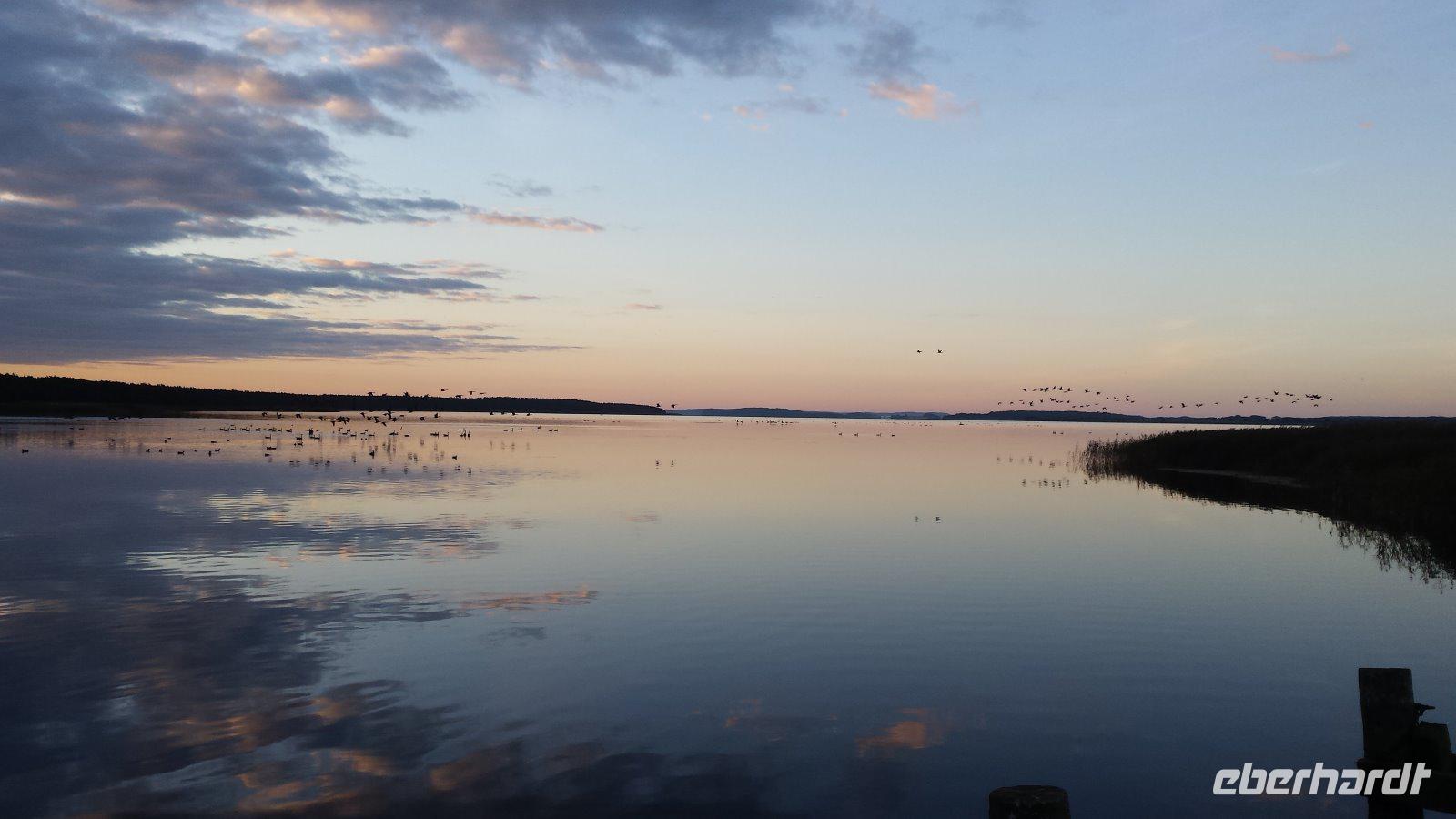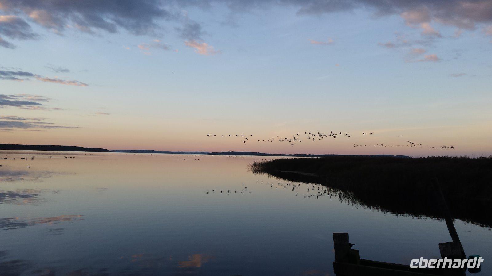 Sogar eine große Schar Kraniche auf den abgeernteten Felder entlang der Straße nach Sassnitz gab sich die Ehre und verabschiedete uns.