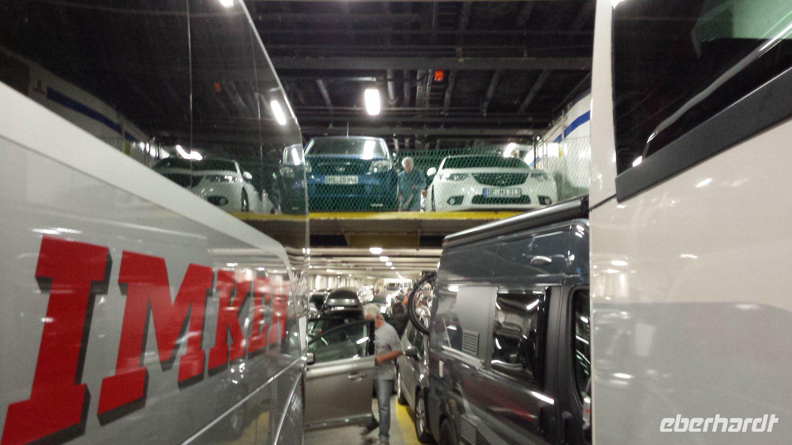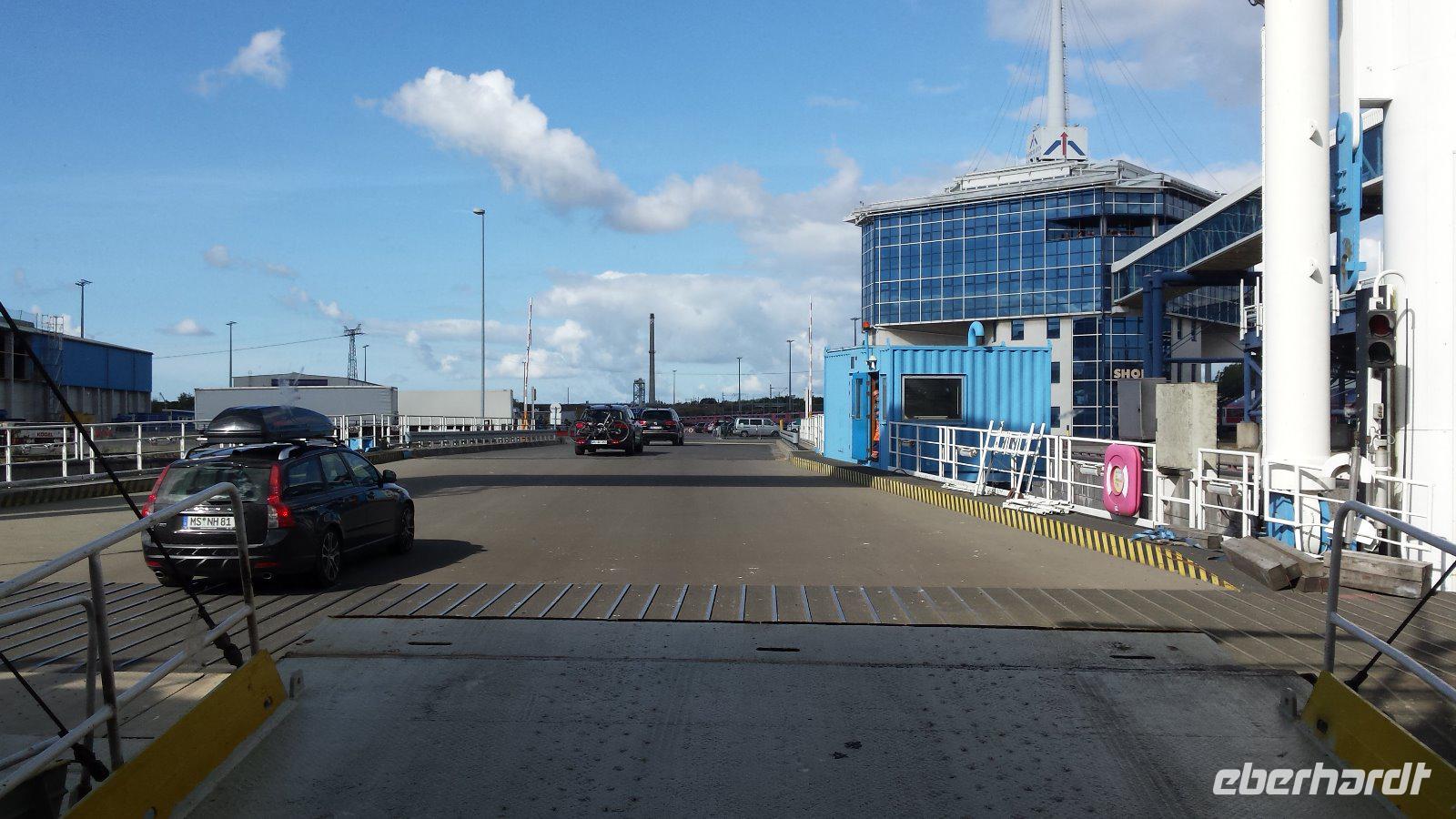 Nach einem Aufenthalt im Hafen Sassnitz begaben wir uns zum Fährhafen Mukran, dort warteten wir auf unsere Fähre. Nach einer Passkontrolle konnten wir recht schnell im Schiffsrumpf eingeparken und viele erkundeten die Fähre und genossen die sehr ruhige und sonnige Überfahrt nach Rönne auf die Insel Bornholm.