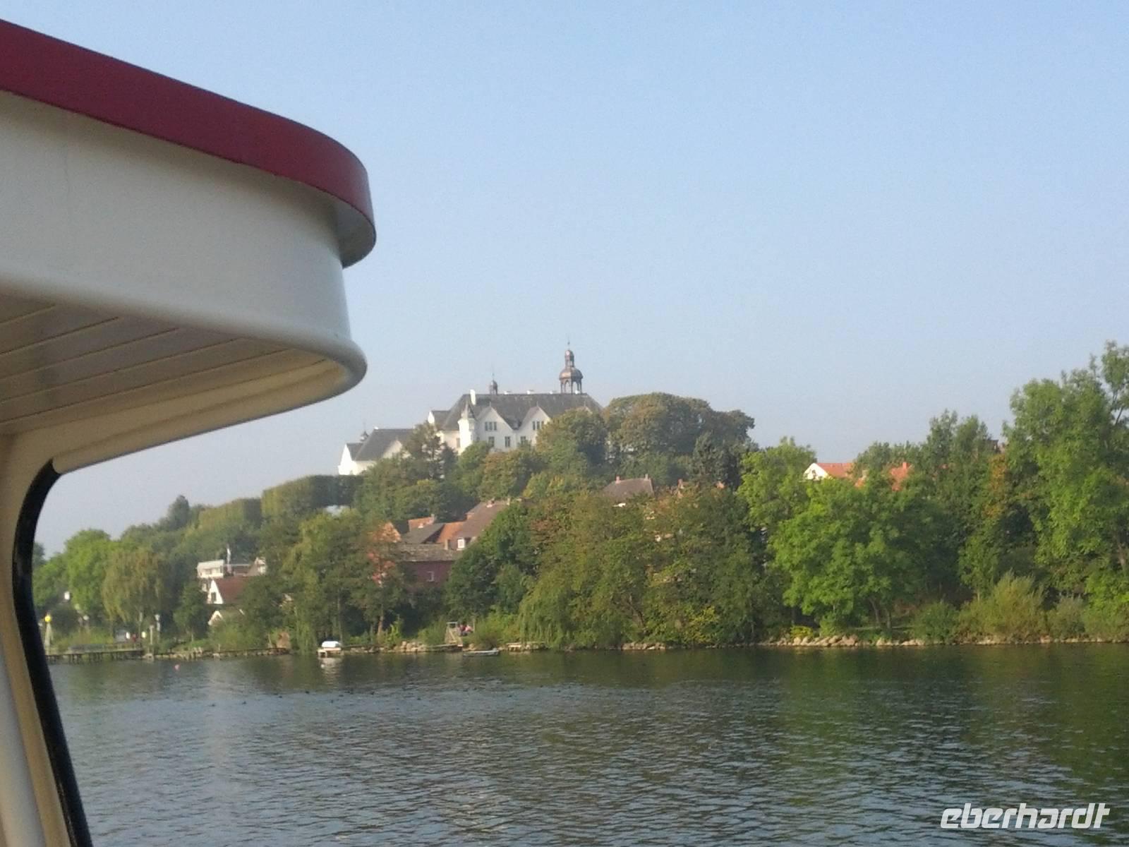 Unser letzter gemeinsamer Ausflug auf dieser Reise führt uns heute in die Holsteinische Schweiz. Von Plön aus unternehmen wir eine Seenrundfahrt. Die wasserreiche Region läßt sich so sehr gut erkunden, der Zugang zum Ausflugsschiff ist rolligerecht und über die Bordlautsprecher bekommen wir Infos zum Ausflugsgebiet.