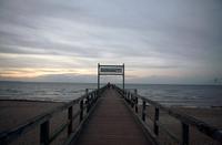 An der dortigen Strandpromenade steigen wir am großen Ferienpark aus und rollen am Meer entlang bis zur neuen, weit in die See hineinragenden Seebrücke.