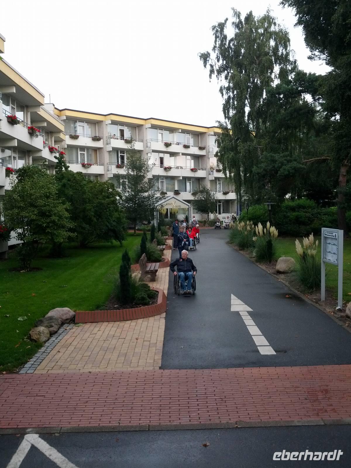 Als wir uns zum ersten Abendessen, einem üppigen Buffet niederlassen, hat sich schon jeder in seinem Zimmer, teilweise speziell für Rollstuhlfahrer, eingerichtet.