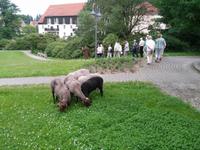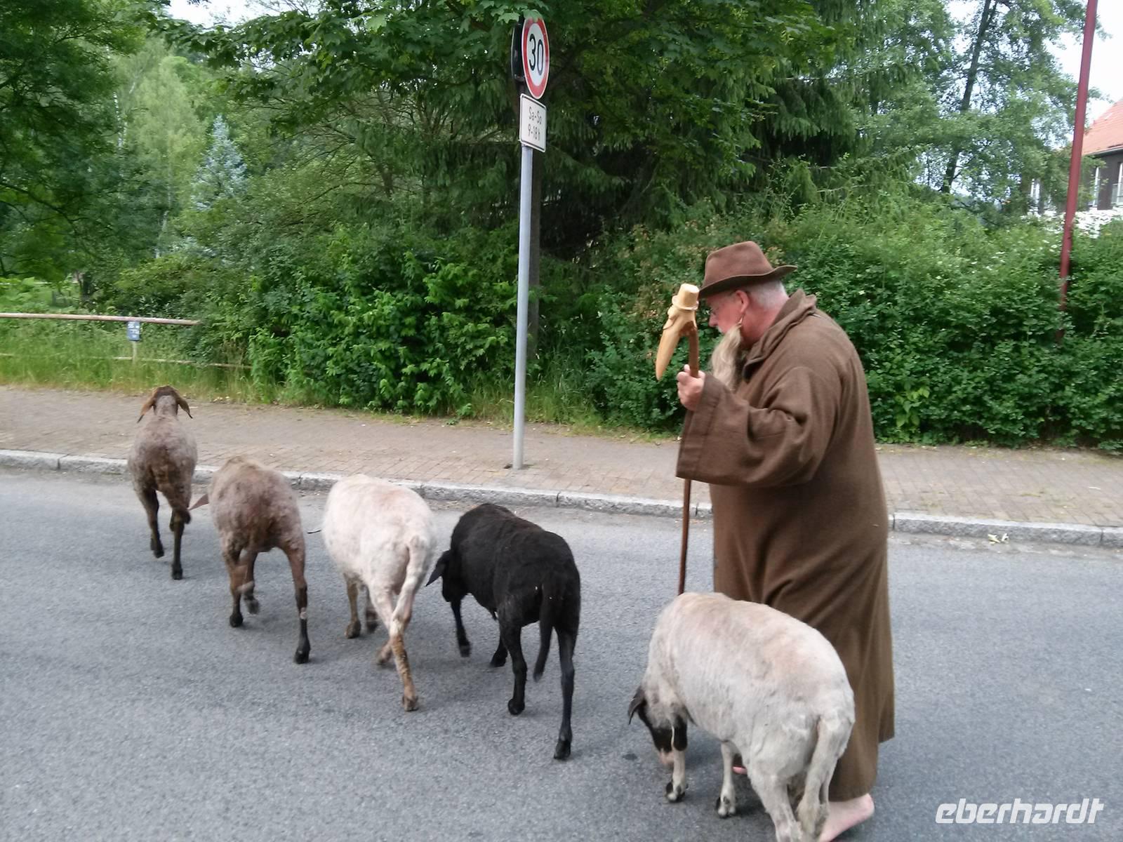 Anderthalb Stunden später holte uns Schäfer Jonas zu einer Orts- und Kurparkbegehung ab. Schäfer Jonas soll der Legende nach als schafehütender Wandermönch von den Cölestinern aus Oybin über den Berg gekommen sein und Jon(a)sdorf begründet haben, heute ziert er das Ortswappen.