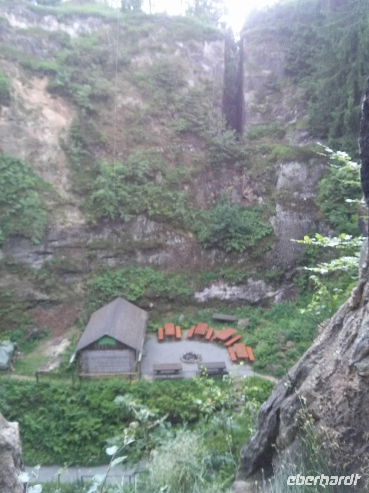 Vorbei an diversen Sandsteingebilden, wie dem "Kelch" ging es dann von Lückendorf herunter nach Oybin, wo wir die Zeit für Spaziergänge nutzten und die Burg/Klosteranlage besichtigen konnten. Sehr hübsch auch die innen bunt ausgemalte Berg- oder Hochzeitskirche, welche stufig wie ein Theater ausgeführt ist: Der Altar liegt nicht, wie gewohnt einige Stufen oberhalb der Gemeinde sondern steht mit am tiefsten Punkt des Gottesdienstraumes.