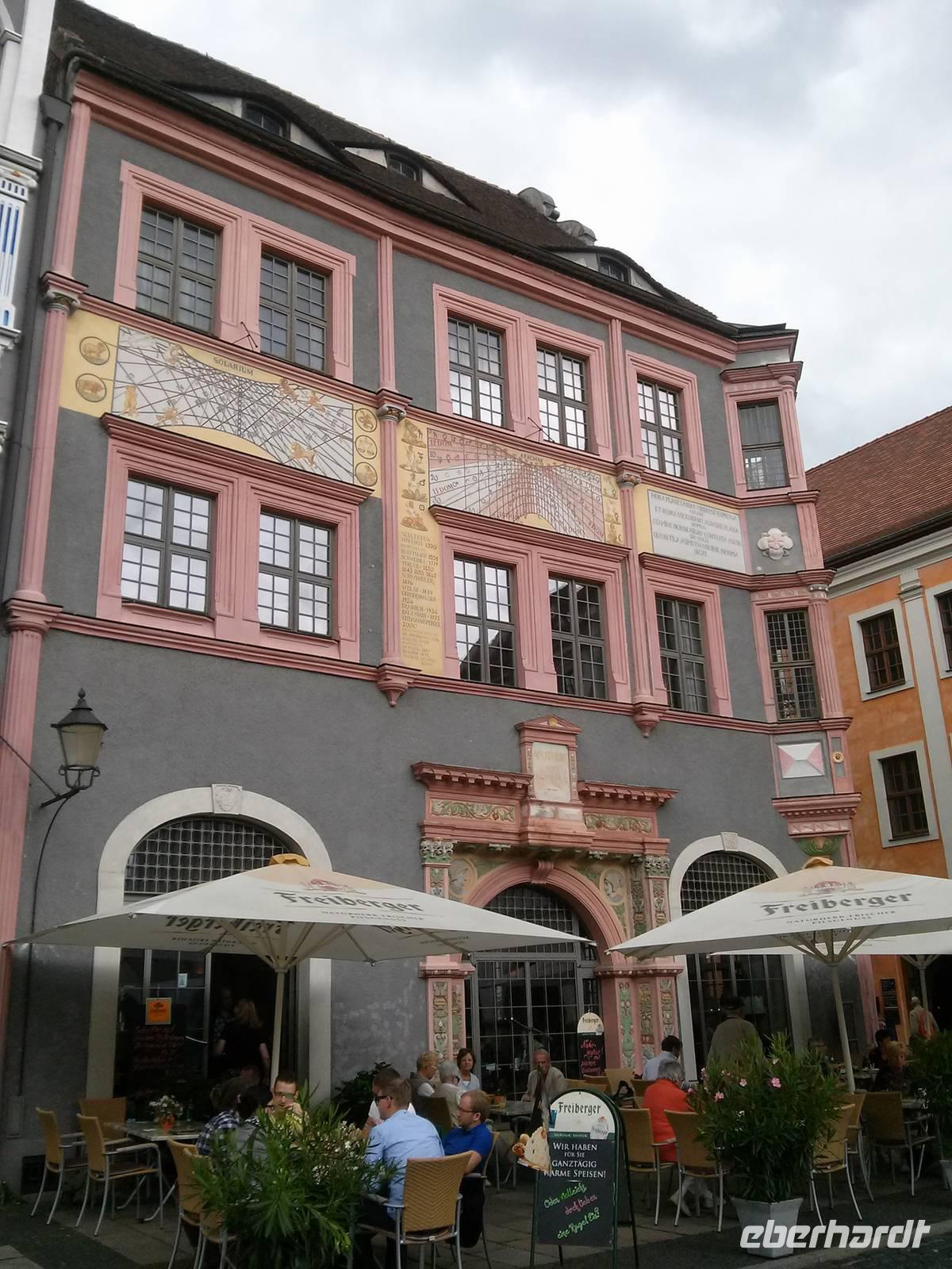 Ein Umgebindehaus ist im Prinzip die Verbindung der Blockhaustechnik mit der Ständerbautechnik (Fachwerk), sowie einem gemauerten Teil. Der mit Steinen aufgemauerte Teil markiert den alten Ziegenstall, der Blockhausteil die Wohnstube. Im Obergeschoss oder den Obergeschossen befanden sich u.a. Scheune bzw. Lager- und Schlafräume, je nachdem, welchem Beruf die Bewohner nachgingen, Bauern und Handwerker oder Händler. Die Türstöcke der Händlerhäuser waren zudem meist aus Sandstein gearbeitet und aufwendig verziert. Und zu einem echten Umgebindehaus, einem Häusl, gehört natürlich ein Gärtl, in dem Blumen und am besten ein Rosenstock stehen.Um 1500 so erfuhren wir, war die Lausitz noch, bis auf ein paar vereinzelte Schafshirten, Köhler oder Waldbauern, so gut wie unbesiedelt gewesen, aber durch die Reformation und der auf diese folgenden Glaubenskriege, seien insbesondere böhmische Exulanten in die Region gekommen.Woher aber das Radel im Halse komme, dass konnte uns Reiseleiter Wolfgang nicht erzählen. Die Lausitzer jedenfalls muss man wegen ihres Radels am Halse als die Texaner Deutschlands bezeichnet werden, als hätten sie die sprichwörtliche Kartoffel unter der Zunge - ich selbst habe meiner ersten Unterhaltung mit Wolfgang gedacht, dass dieser Amerikaner aber gut Deutsch spreche.Nun ja, nach unserem Aufenthalt in Obercunnersdorf ging's über Eibau nach Zittau, wo wir zunächst die Blumenuhr und das Glockenspiel aus Meißener Porzellan an der Fleischerbastei besuchten. Gegenüber des ehemaligen Dienstgebäudes des MfS, welches heute leersteht, weil sich keine Käufer für den Bau finden, erfuhren wir, dass die Montagsdemos in Zittau immer Donnerstags stattfanden und während in Berlin die Mauer fiel, steckten die Lausitzer an der Zittauer Stasizentrale schweigend vorbeimarschierend noch mahnende Kerzen auf die Spitzen des gusseisernen Zauns.