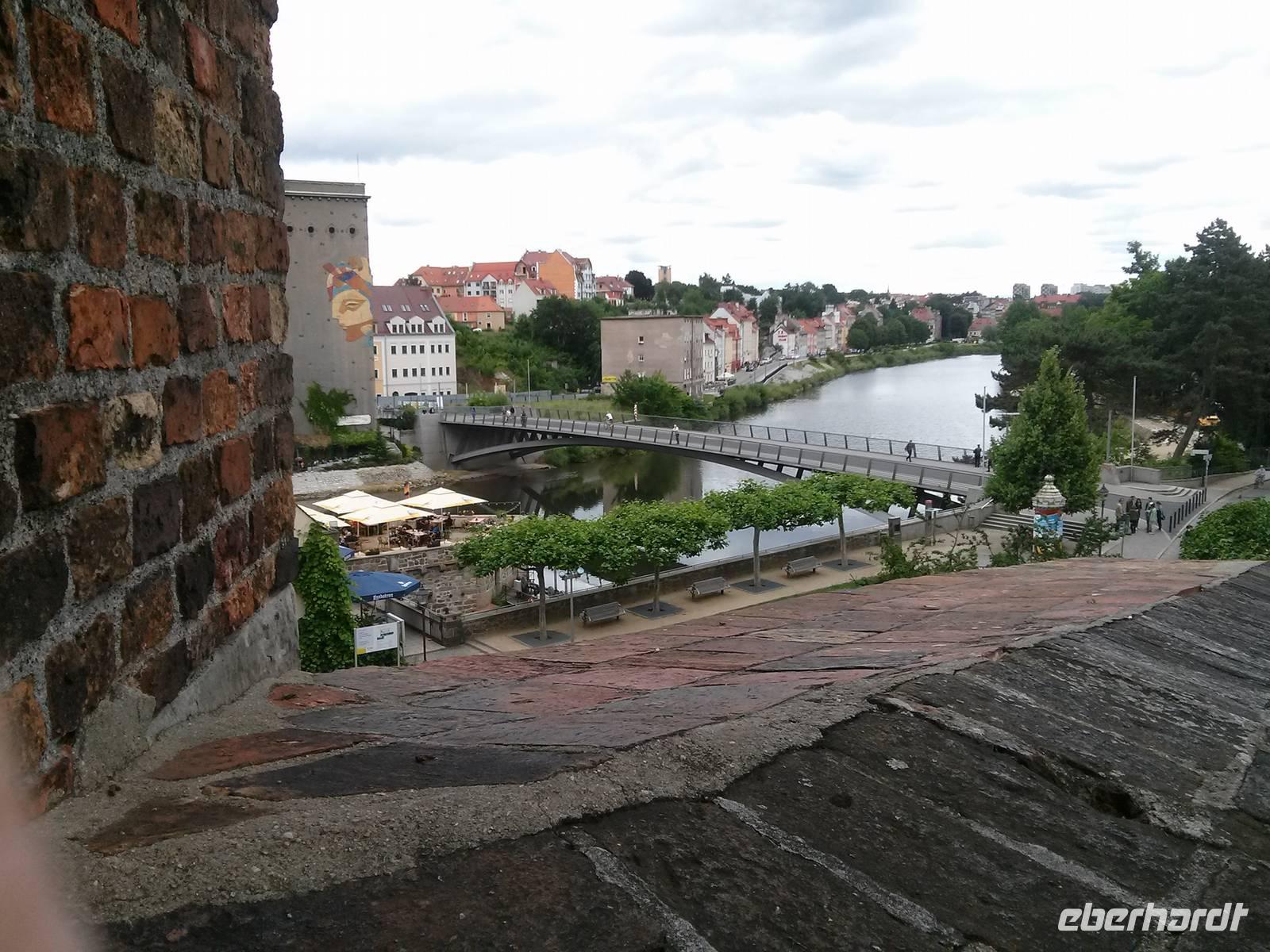 Unser letzter Stadtrundgang galt der deutsch-polnischen Doppelstadt Görlitz-Zgorzelec, wobei wir uns in der Hauptsache dem deutschen teil widmeten. Wir wanderten von der Barbakane, der Kaisertrutz am Reichenbacher Turm über den Obermarkt mit dem Nachtschmied und der Dreifaltigkeitskirche zum Rathaus, wo sich auch das schlesische Museum befindet. Von derot ging es über den unteren Markt zur Peter- und Paulskirche, die direkt oberhalb der Neiße liegt. An der Altstadtbrücke endete die Führung und die Gruppe lief wieder, gemäß den Interessen der einzelnen, auseinander. So traf man sich teils auf der polnischen Seite wieder oder in der Peter- und Pauls-Kirche, die kurioserweise als protestantische Kirche über Beichtstühle verfügt, oder eben im Jugendstil-Kaufhaus am Demiani-Platz. Den Verfasser dieser Zeilen verschlug es in der Zwischenzeit noch in die Mikwe in der Nikolaistraße, das jüdische Ritualbad aus dem Mittelalter, welches von einer Quelle unter "dem Dom" gespeist wird. Seit der frühen Neuzeit ist es zweckentfremdet worden, zunächst von einem Färber, später gehörten die Kellerräume einer Brauerei.