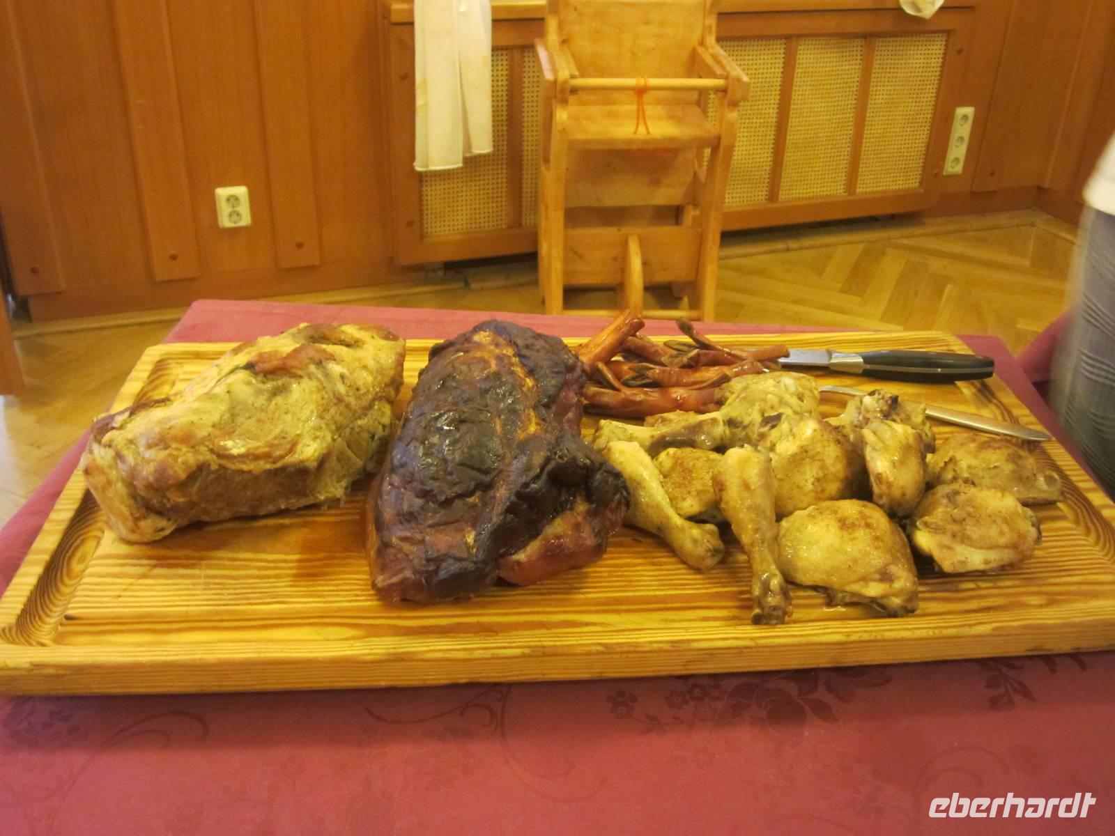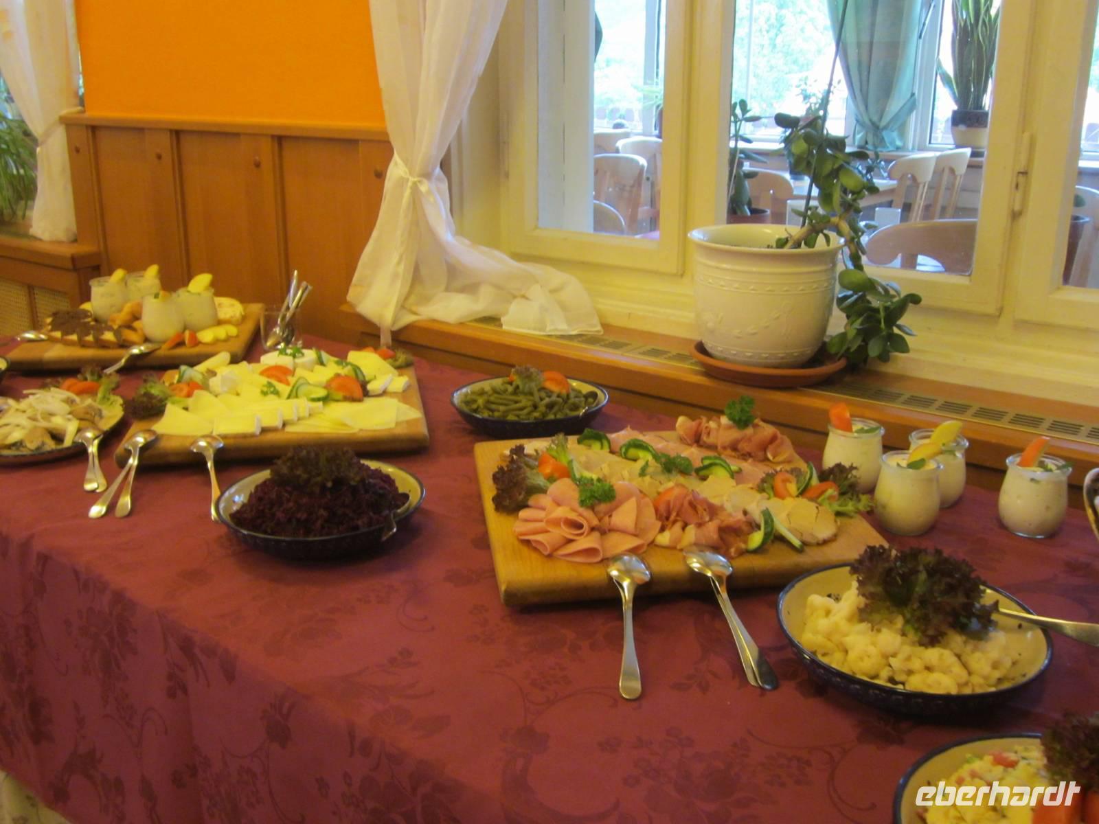 Am Abend werden wir mit einem reichhaltigen Büffet und typischen Produkten verwöhnt. Probiert werden nicht nur die Arbern sondern auch die Teichelmauke und vieles andere.