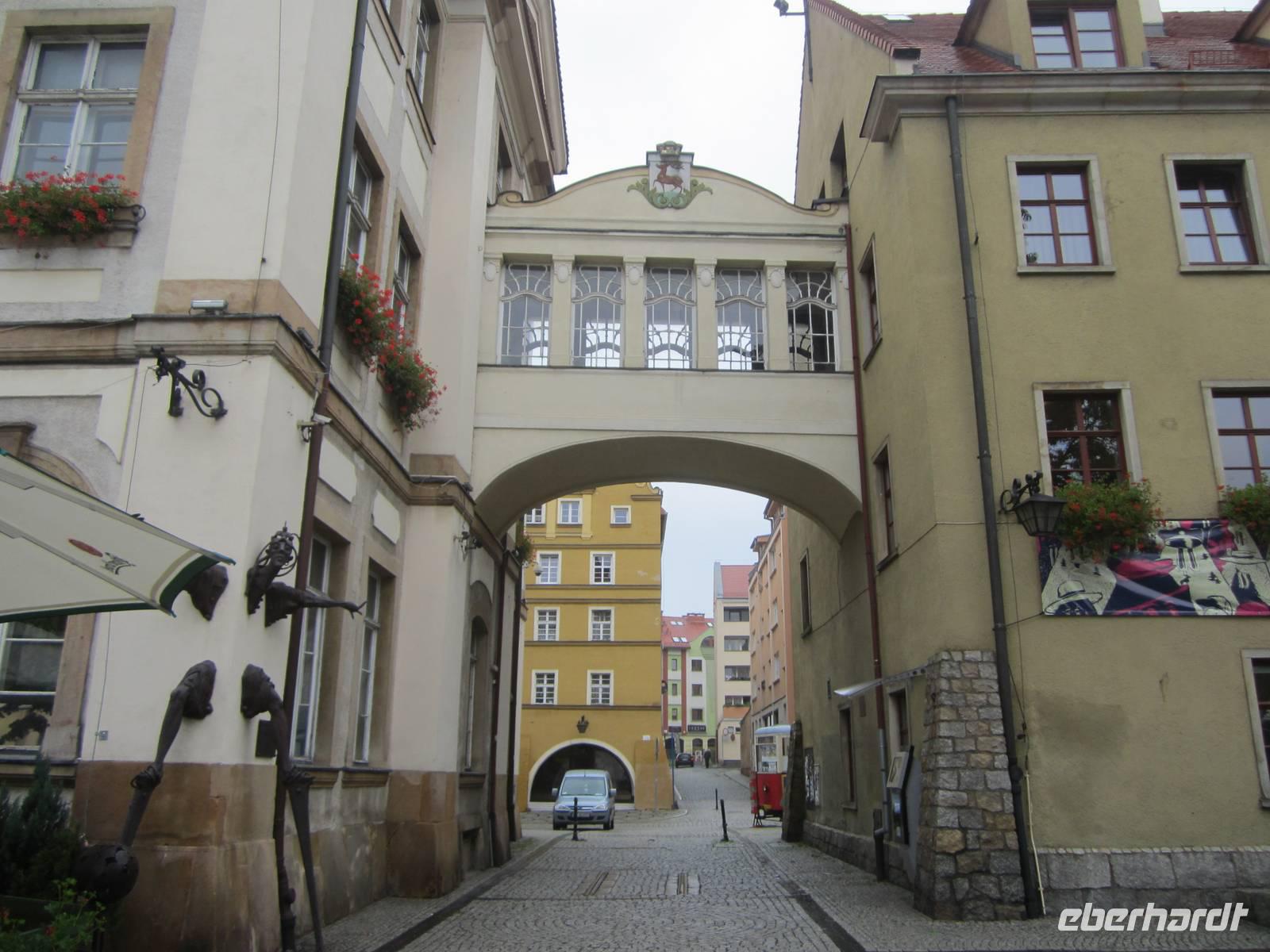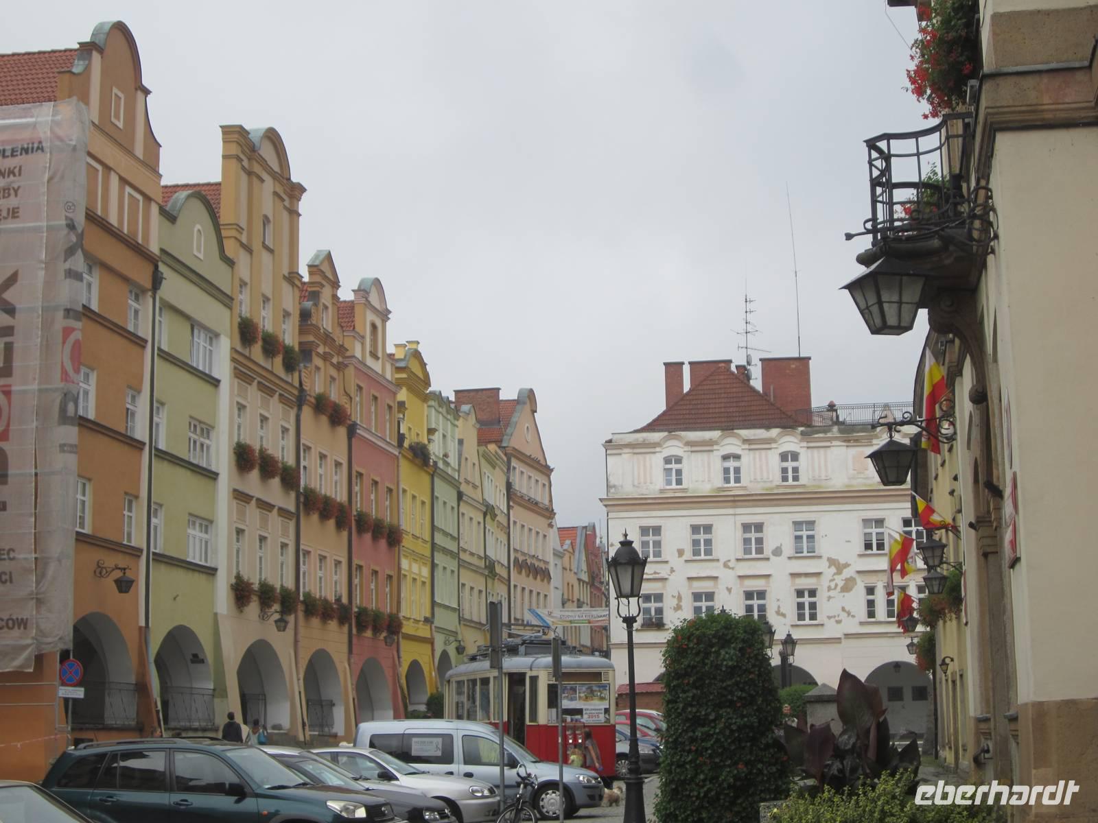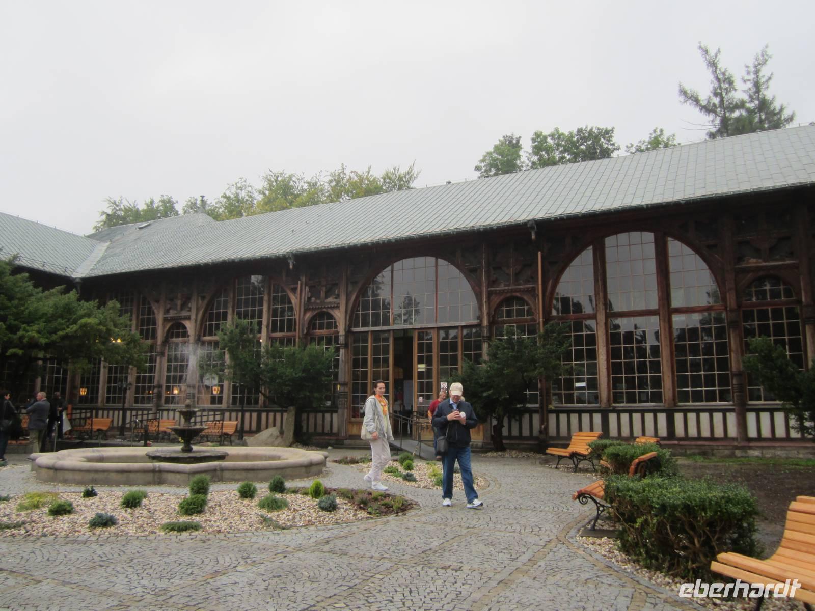 Es regnet und die Wolken hängen tief. Irmela wartet mit optimistischen Wetterprognosen auf uns. Also gut gestärkt starten wir in den Tag und für einige von uns ist es ein Start in die Vergangenheit. Wir fahren wieder unsere gewohnte Strecke nach Zittau und nehmen den Grenzübergang, an dem Angela Merkel 2007 gestanden hat. Im Dezember 2007 sind Tschechien und Polen dem Schengenabkommen beigetreten und somit erleben wir keine Grenzkontrollen. Unproblematisch fahren wir durch beide Länder zuerst am polnischen Braunkohletagebau Turow vorbei um dann durch den Friedländer Zipfel von Tschechien zu fahren. In Frydland haben wir einen Blick auf das Schloss von Wallenstein. Nach Neustadt an der Tafelfichte/Nové Mesto pod Smrkem überqueren wir wiederum die Grenze nach Polen. Auf unserer Fahrt erleben wir jetzt einen Moment wo die Wolken etwas aufziehen und wir die Berge des Isargebirges sehen können.Gegen 10.30 Uhr kommen wir in Bad Flinsberg/ Swieradów-Zdrój an. Wir bummeln durch den Kurpark und gelangen zum Kurhaus mit Wandelhalle. Einige von uns haben hier schon eine Kur erlebt und staunen über die positive Veränderung im Ort. Weiter geht unsere Fahrt durch Schlesien entlang der Sudetenstraße nach Schreiberhau Szklarska Poreba . Hier planend wir eine kurze Mittagspause. Danach fahren wir nach Hirschfeld/Jelena Gora.Mit Irmela bummeln wir durch die Stadt und erleben schöne Bürgerhäuser um den Marktplatz, moderne Kunst und interessante Geschäfte. Bei einem Kaffee in den Lauben treffen wir uns wieder, bevor wir die Stadt am Riesengebirge verlassen. Leider bleibt uns der Blick auf das Riesengebirge und der Schneekoppe verwehrt. Einen Ort wollen wir noch aufsuchen bevor wir wieder nach Deutschland fahren Stonsdorf/ Staniszów, Am Dorfplatz befinden sich ein Gasthof und ein Brauereigebäude, in dem ab 1810 der über die Grenzen Schlesiens hinaus bekannte Echt Stonsdorfer Bitter, ein Kräuterlikör, hergestellt wurde- Danach geht es aber Richtung Görlitz und dann wiederum am Braunkohletagebau vorbei nach Zittau und Johnsdorf.