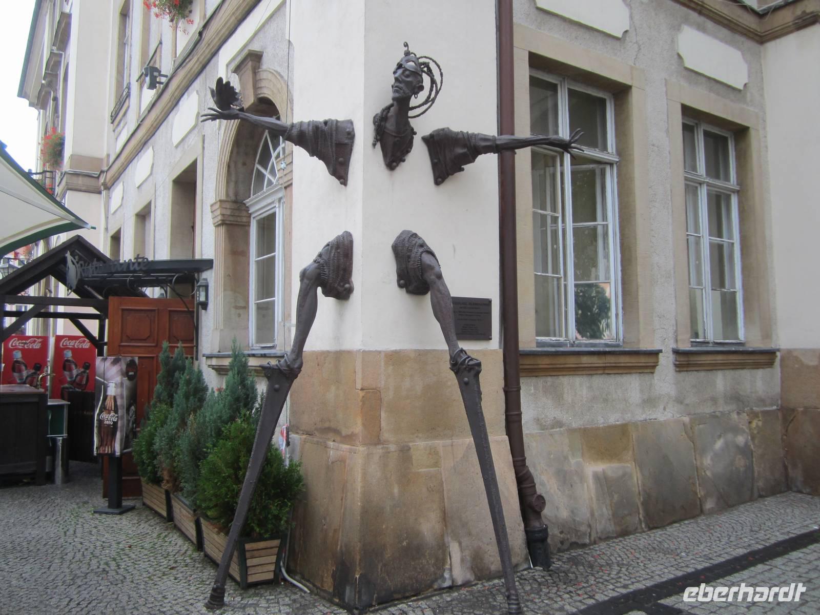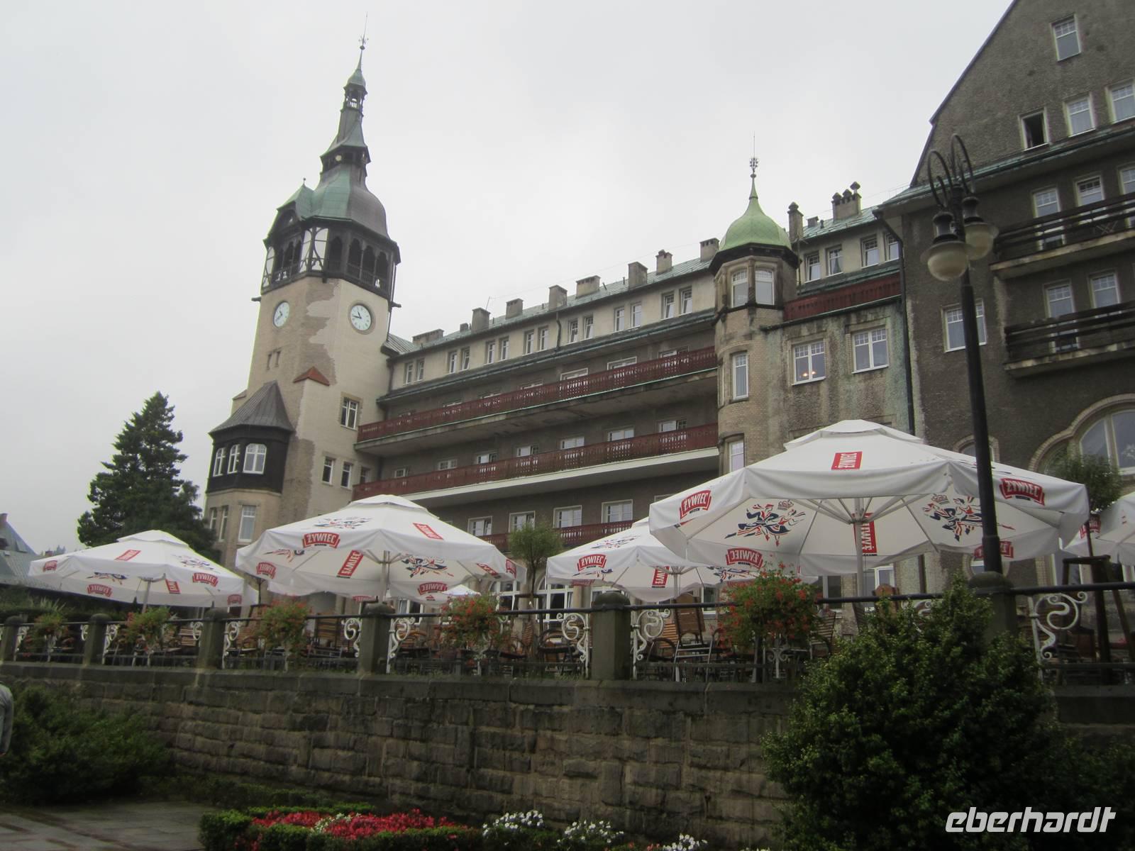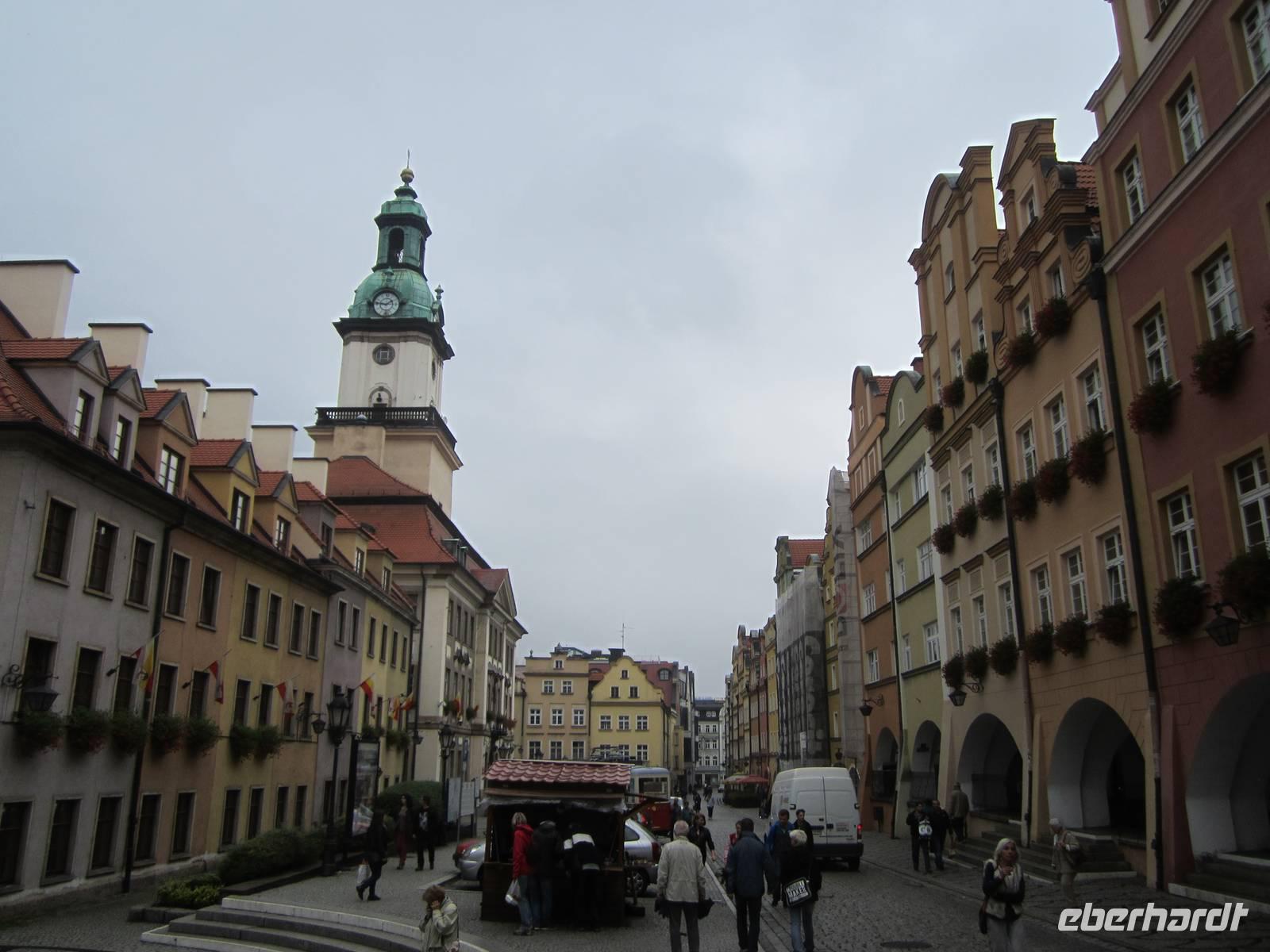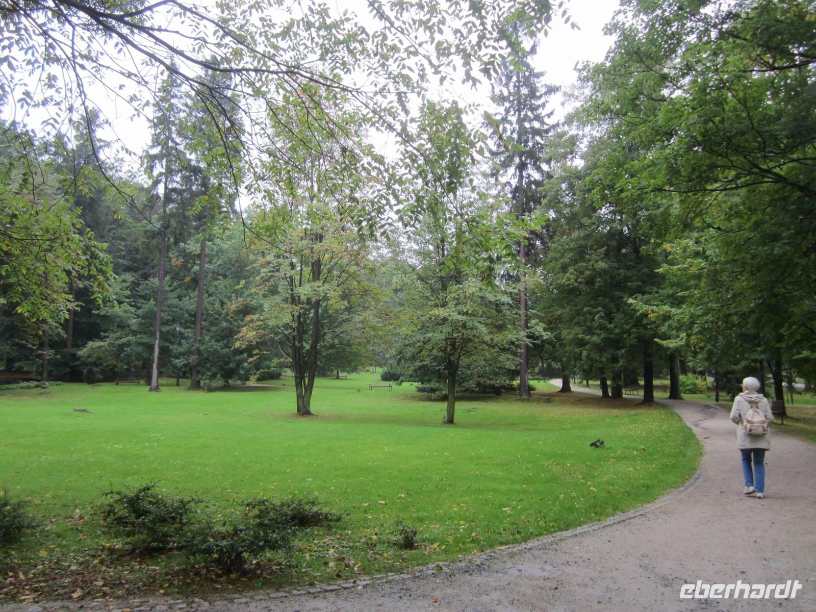 Es regnet und die Wolken hängen tief. Irmela wartet mit optimistischen Wetterprognosen auf uns. Also gut gestärkt starten wir in den Tag und für einige von uns ist es ein Start in die Vergangenheit. Wir fahren wieder unsere gewohnte Strecke nach Zittau und nehmen den Grenzübergang, an dem Angela Merkel 2007 gestanden hat. Im Dezember 2007 sind Tschechien und Polen dem Schengenabkommen beigetreten und somit erleben wir keine Grenzkontrollen. Unproblematisch fahren wir durch beide Länder zuerst am polnischen Braunkohletagebau Turow vorbei um dann durch den Friedländer Zipfel von Tschechien zu fahren. In Frydland haben wir einen Blick auf das Schloss von Wallenstein. Nach Neustadt an der Tafelfichte/Nové Mesto pod Smrkem überqueren wir wiederum die Grenze nach Polen. Auf unserer Fahrt erleben wir jetzt einen Moment wo die Wolken etwas aufziehen und wir die Berge des Isargebirges sehen können.Gegen 10.30 Uhr kommen wir in Bad Flinsberg/ Swieradów-Zdrój an. Wir bummeln durch den Kurpark und gelangen zum Kurhaus mit Wandelhalle. Einige von uns haben hier schon eine Kur erlebt und staunen über die positive Veränderung im Ort. Weiter geht unsere Fahrt durch Schlesien entlang der Sudetenstraße nach Schreiberhau Szklarska Poreba . Hier planend wir eine kurze Mittagspause. Danach fahren wir nach Hirschfeld/Jelena Gora.Mit Irmela bummeln wir durch die Stadt und erleben schöne Bürgerhäuser um den Marktplatz, moderne Kunst und interessante Geschäfte. Bei einem Kaffee in den Lauben treffen wir uns wieder, bevor wir die Stadt am Riesengebirge verlassen. Leider bleibt uns der Blick auf das Riesengebirge und der Schneekoppe verwehrt. Einen Ort wollen wir noch aufsuchen bevor wir wieder nach Deutschland fahren Stonsdorf/ Staniszów, Am Dorfplatz befinden sich ein Gasthof und ein Brauereigebäude, in dem ab 1810 der über die Grenzen Schlesiens hinaus bekannte Echt Stonsdorfer Bitter, ein Kräuterlikör, hergestellt wurde- Danach geht es aber Richtung Görlitz und dann wiederum am Braunkohletagebau vorbei nach Zittau und Johnsdorf.