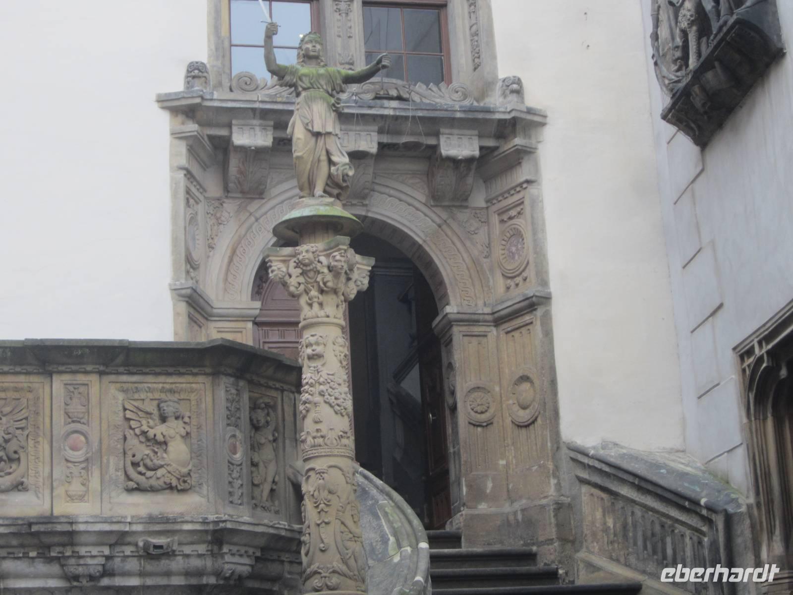 Nach dem wir am Domstift mit dem farbenfrohen Turmportal vorbei gelaufen sind kommen wir in die Schlossstraße. Unser Ziel ist der Burgplatz mit dem Burgtheater. Hier sehen wir ein besonderes Kunstwerk. Der Pulsnitzer Bildhauer Ernst Rietschel hat die Giebelfigur "Tragödie" geschaffen. (Rietschelgiebel). Danach führt uns unser Weg an der Ruine der Nikolaikirche vorbei wieder zum Dom. Gegen Mittag setzen wir unsere Fahrt fort, um nach Jonsdorf zu fahren. Wir haben ausreichend Zeit und stoppen unsere Fahrt in Herrnhut. Wir besuchen die Schauwerkstatt der Herrnhuter Manufaktur, in der die Herrnhuter Sterne hergestellt werden. Der Stern, der als Ursprung aller Weihnachtssterne gilt. Ausgerüstet mit einigen Exemplaren fahren wir nun endlich nach Jonsdorf.